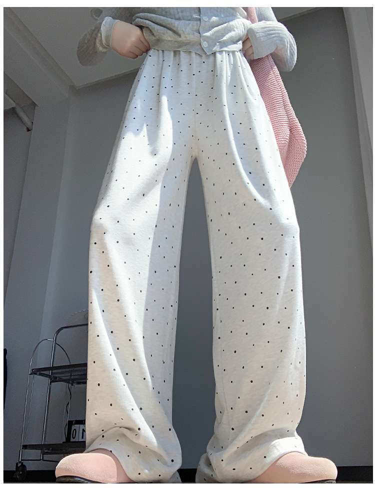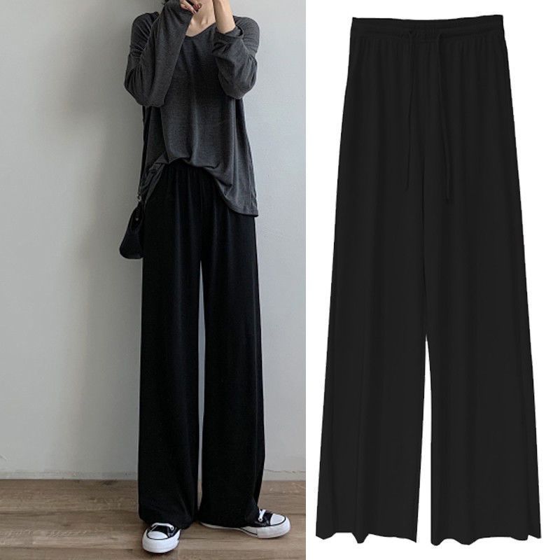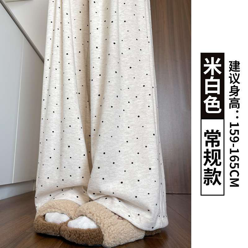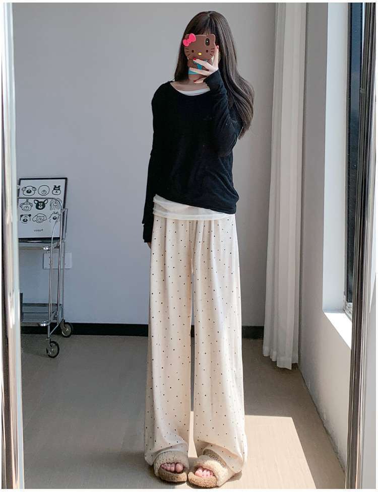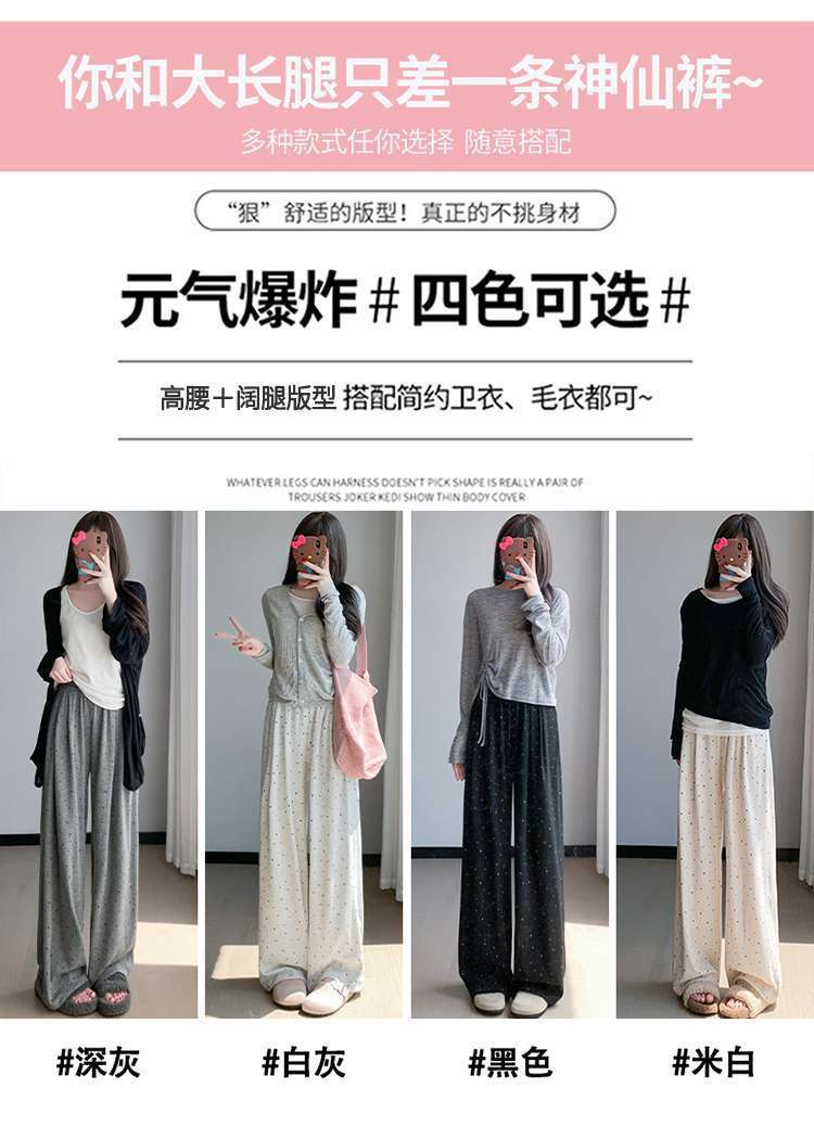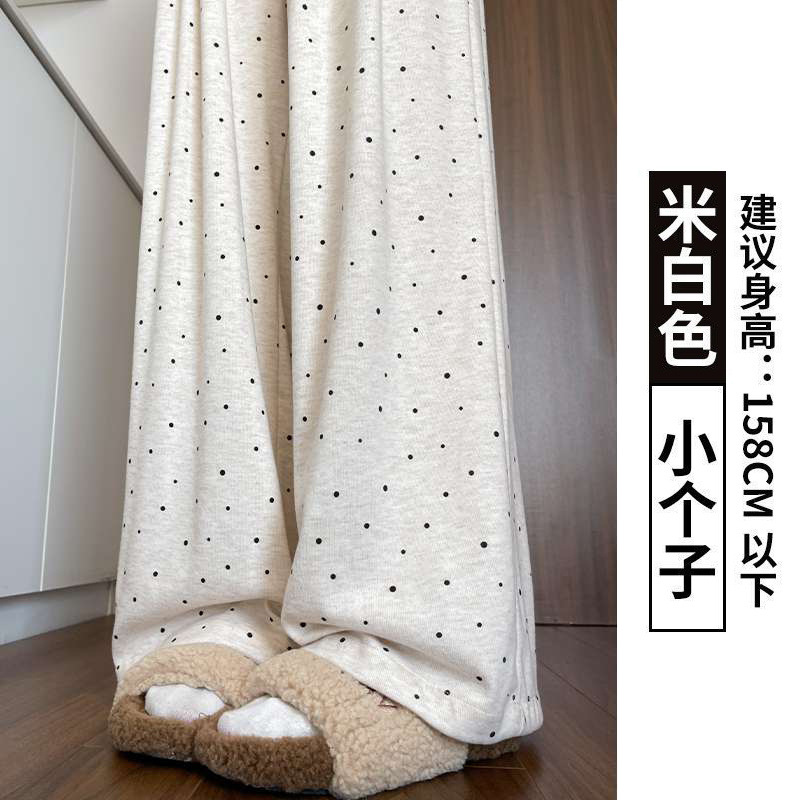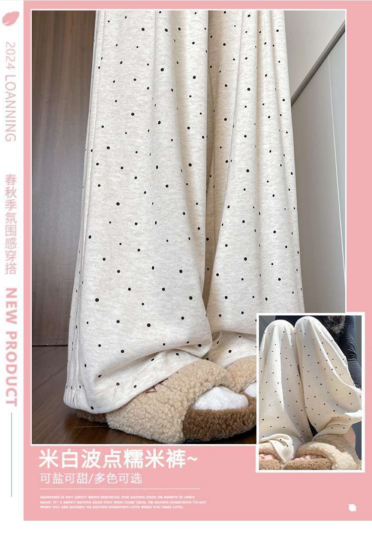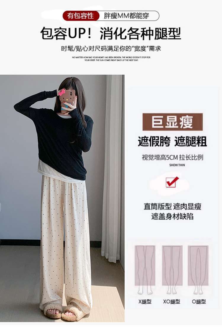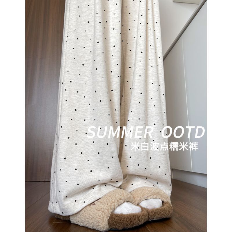 아이보리 넓은 다리 바지 여성 높은 허리 투약 2025 새로운 느슨한 캐주얼 스트레이트 니트 폴로 쌀 바지스토어 가기