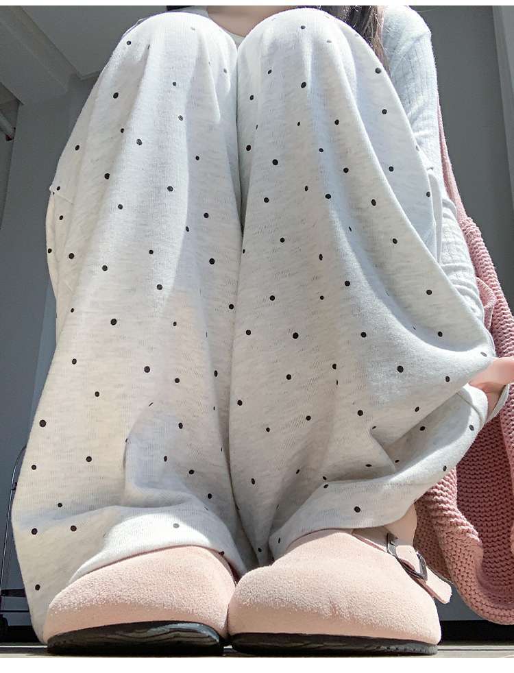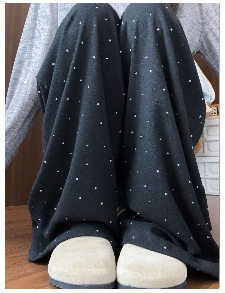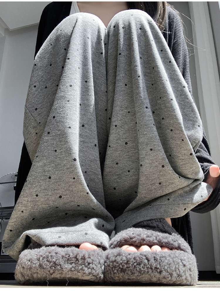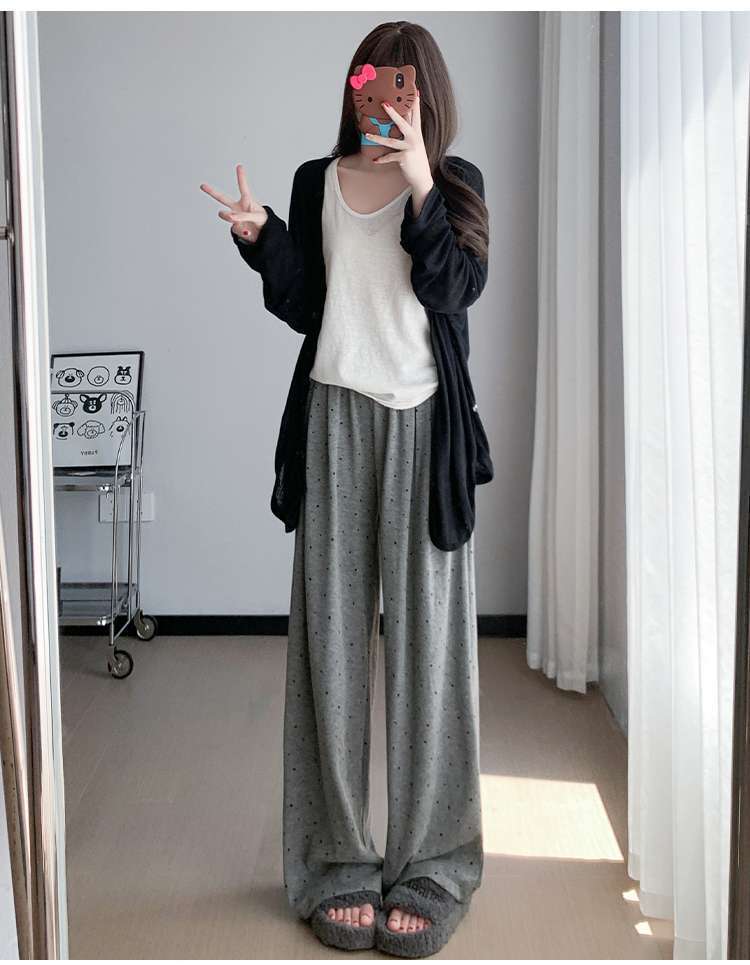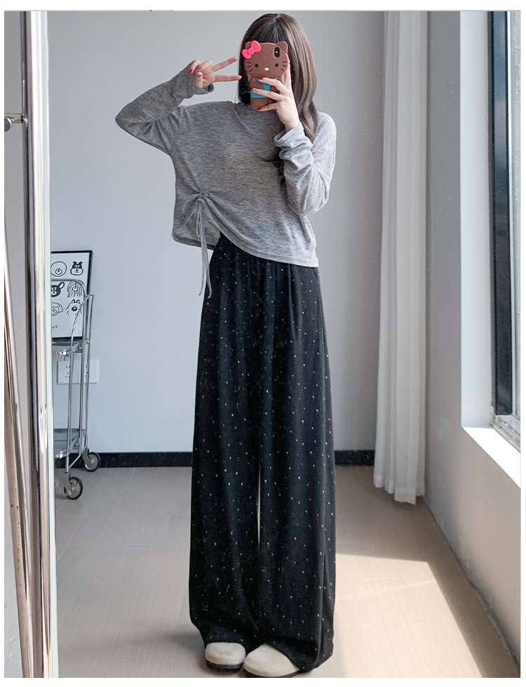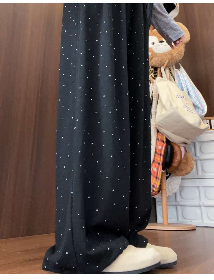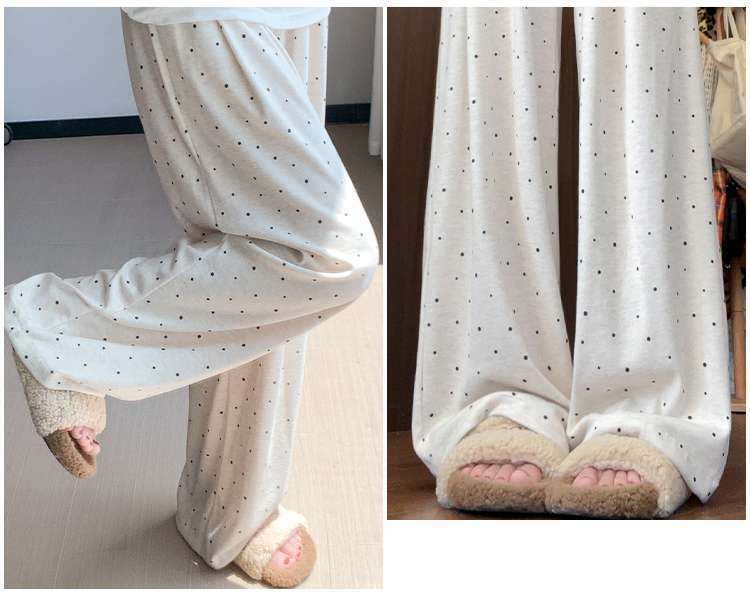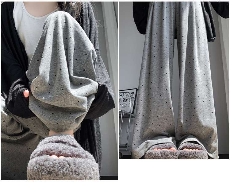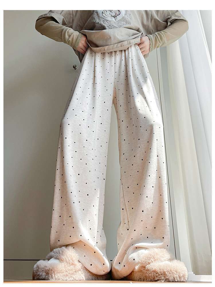 아이보리 넓은 다리 바지 여성 높은 허리 투약 2025 새로운 느슨한 캐주얼 스트레이트 니트 폴로 쌀 바지스토어 가기