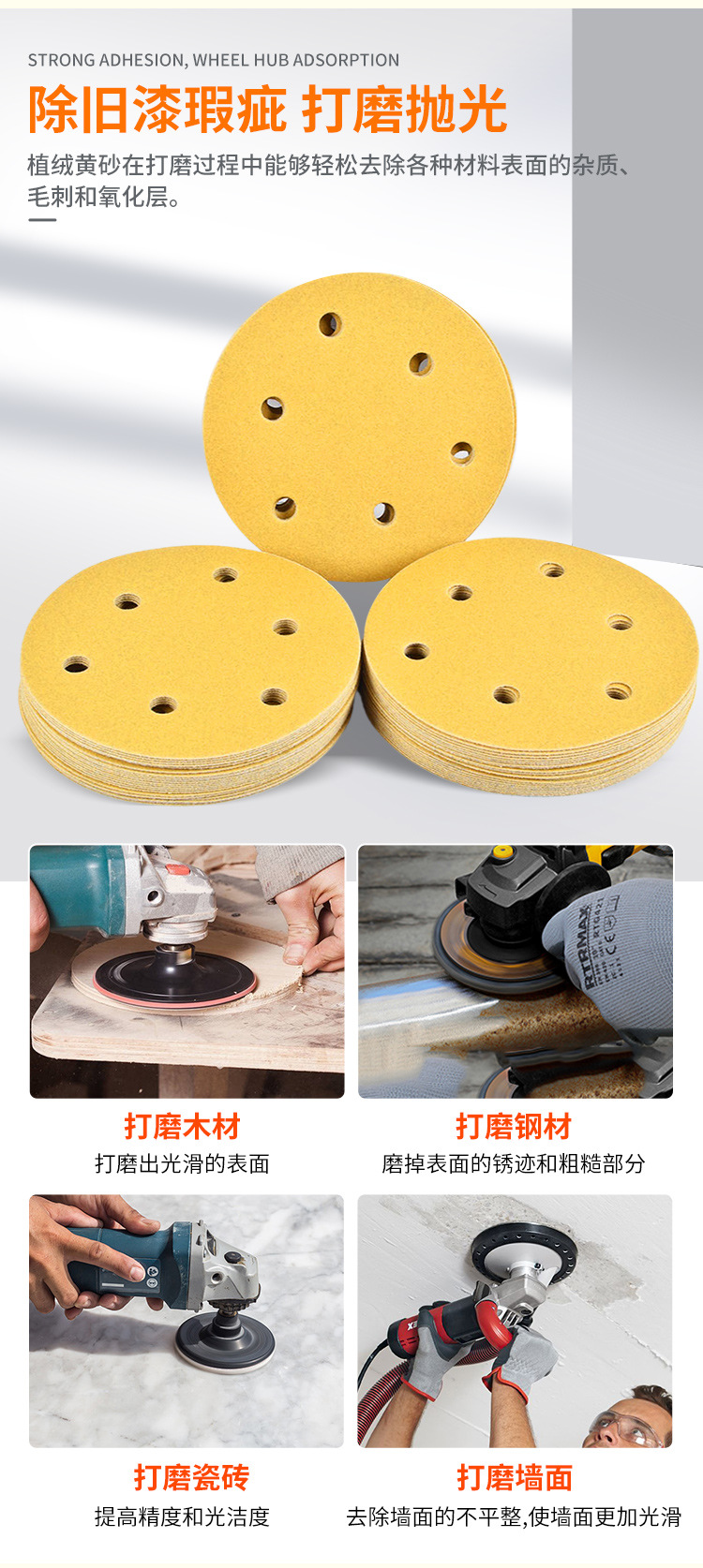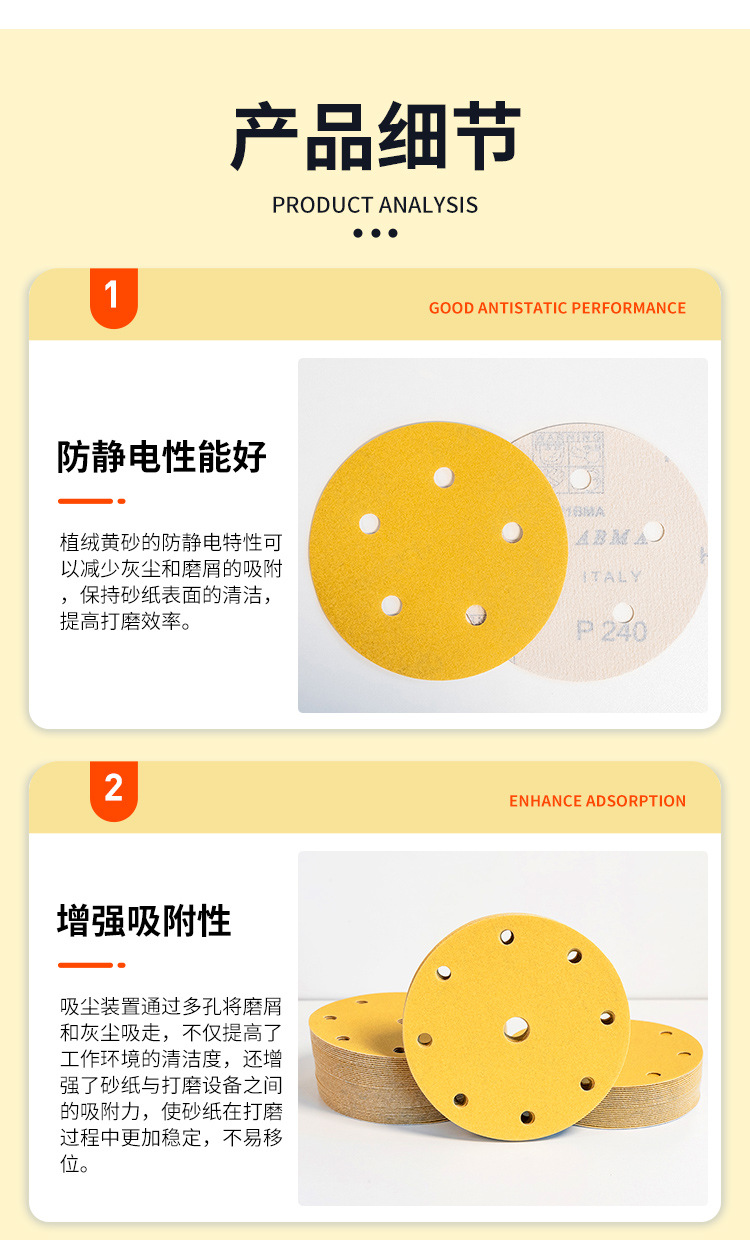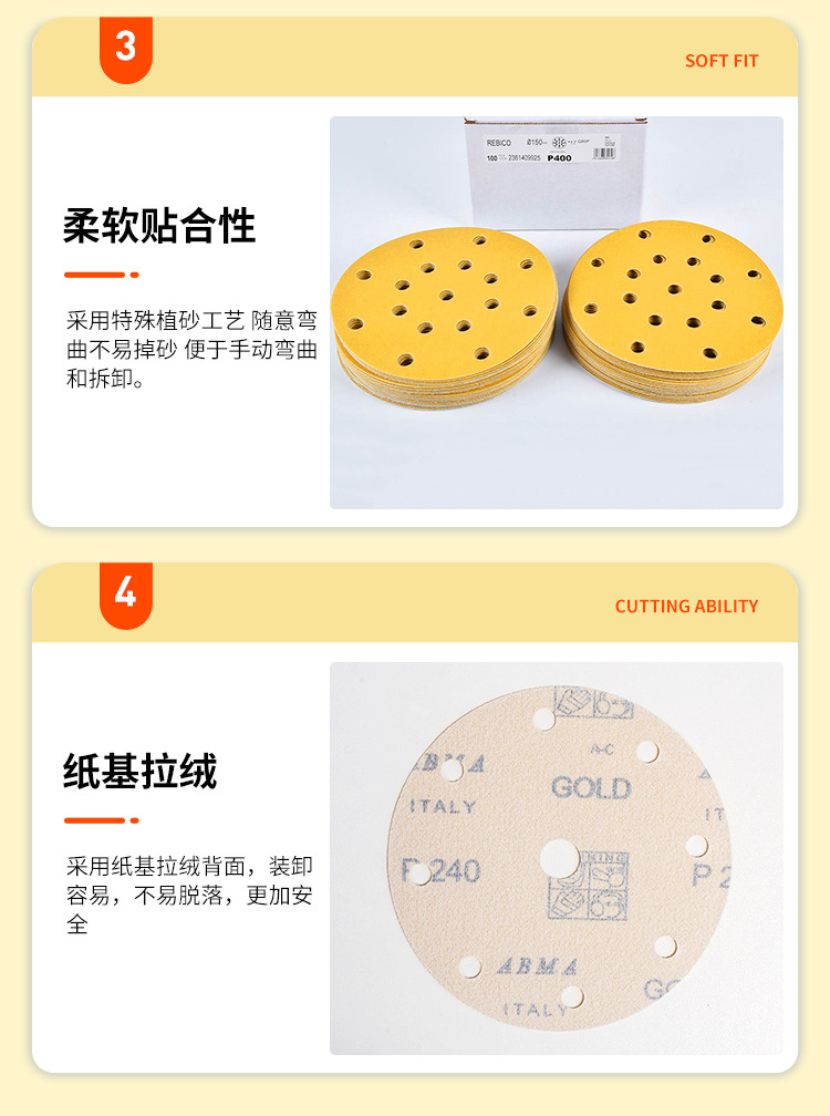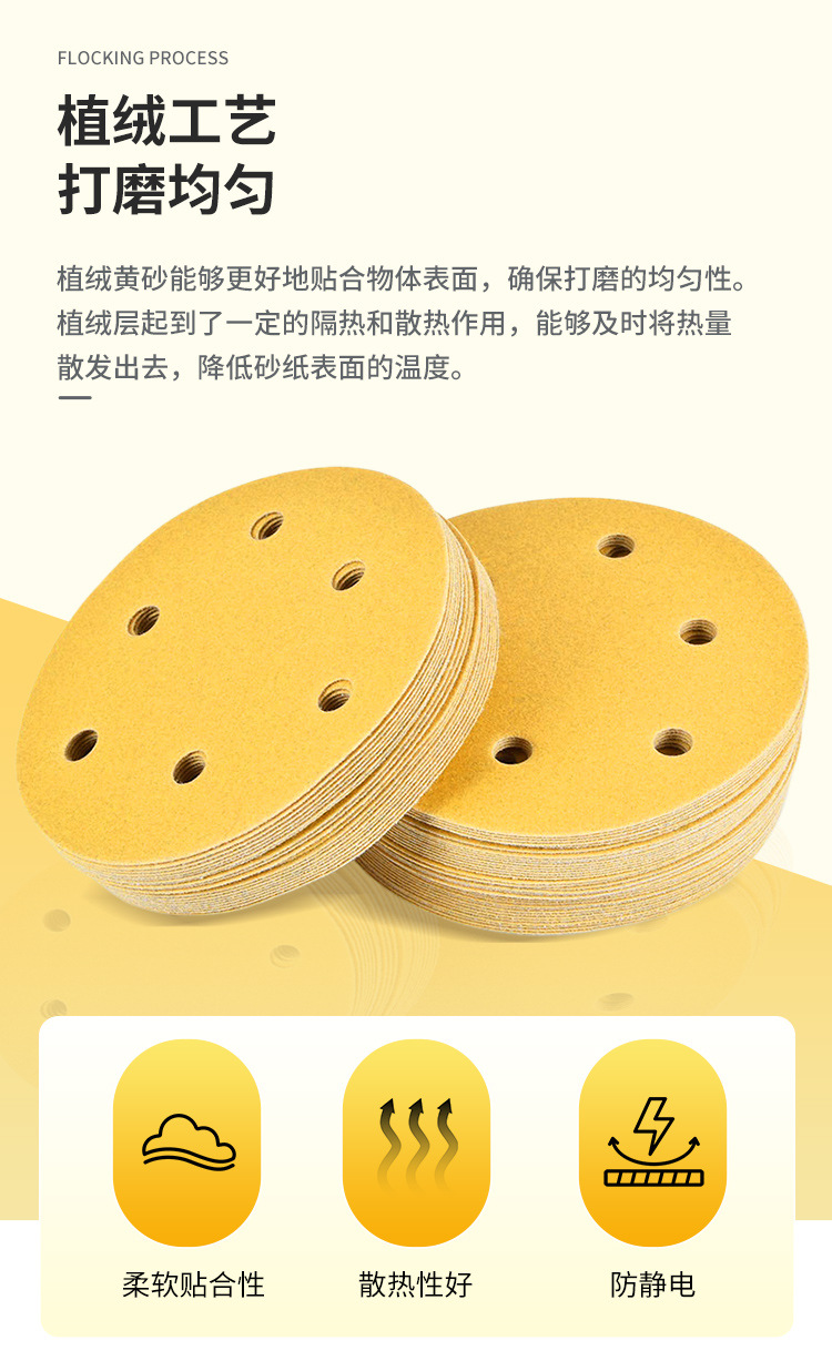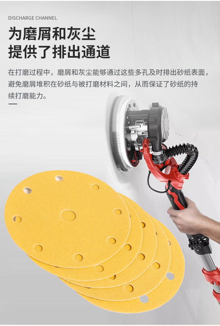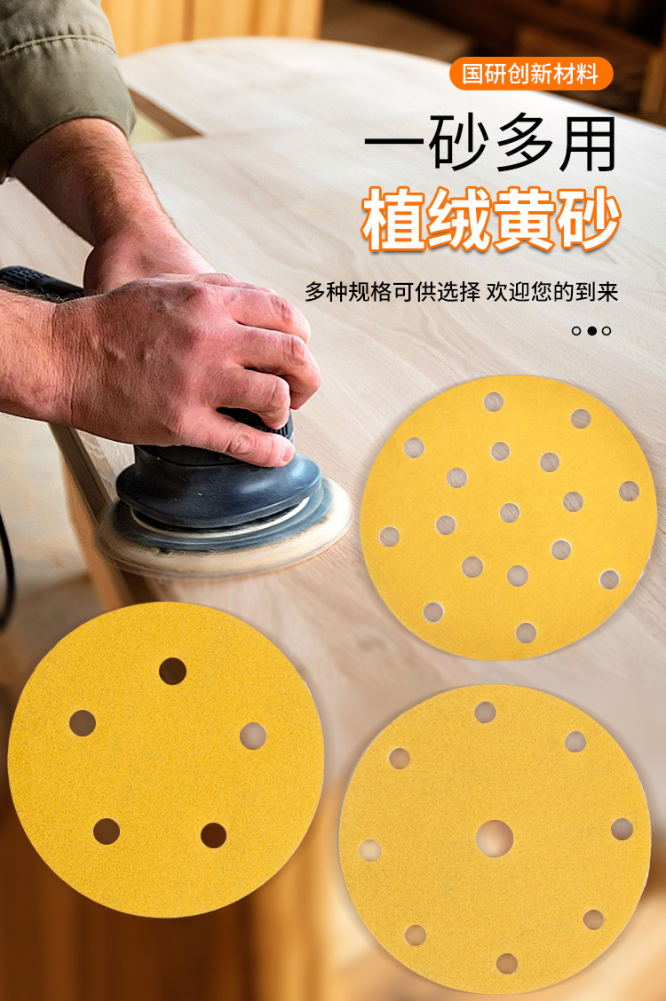 노란색 모래 6 인치 17 구멍 건조 샌딩 종이 자동차 벽 연마 노란색 사포 자체 접착 다시 벨벳 둥근 사포