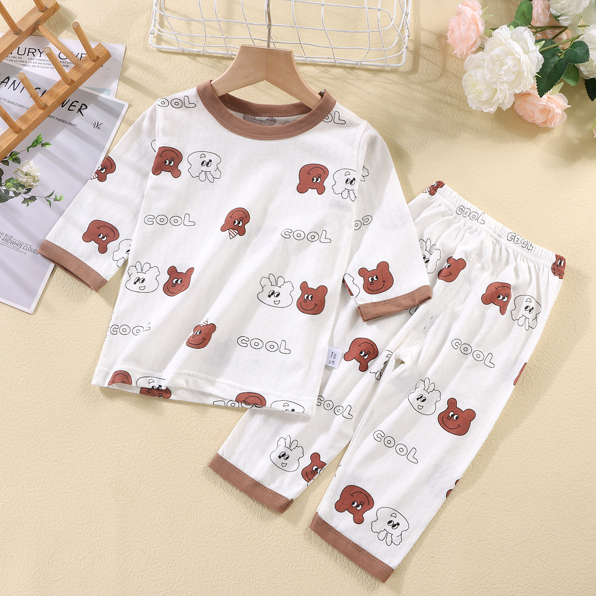 어린이 집 옷 면화 클래스 A 소년 및 소녀 잠옷 아기의 여름 에어컨 옷 카프리 바지 자카드 어린이 세트스토어 가기
