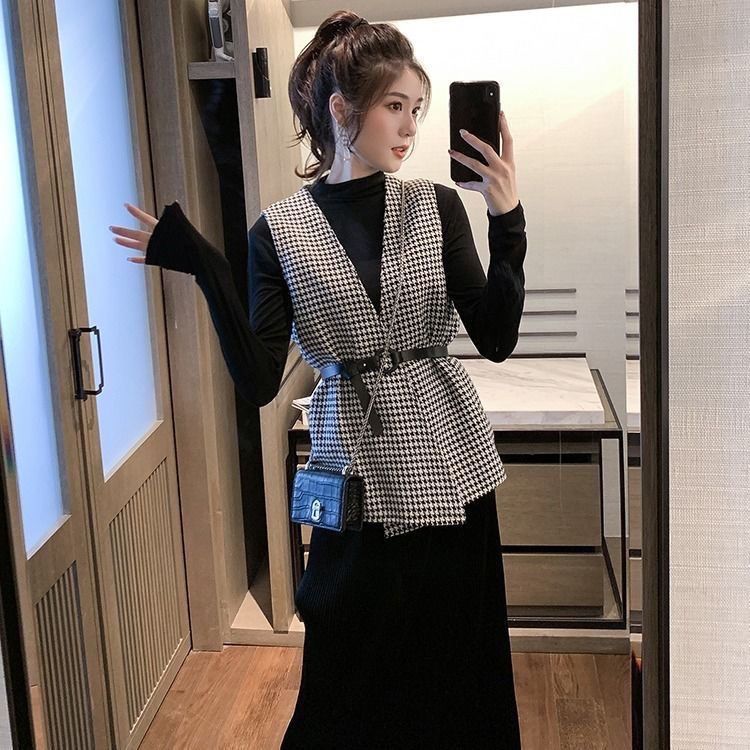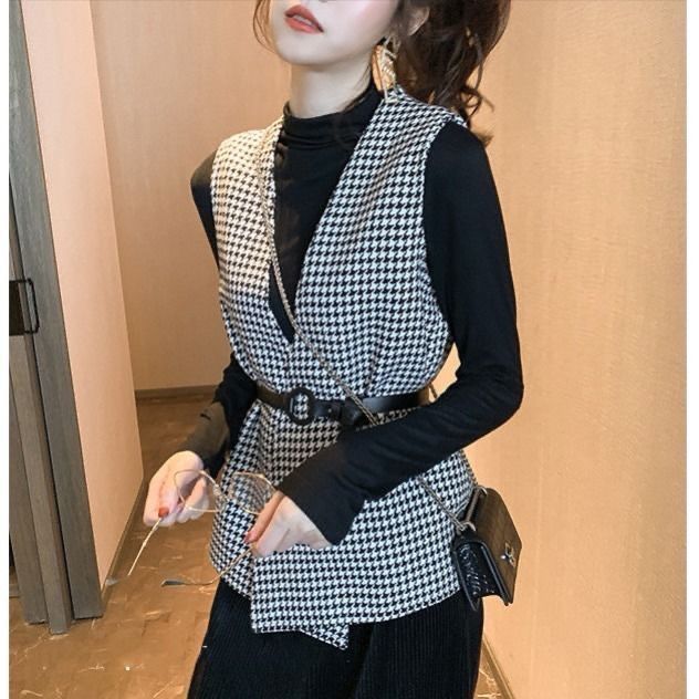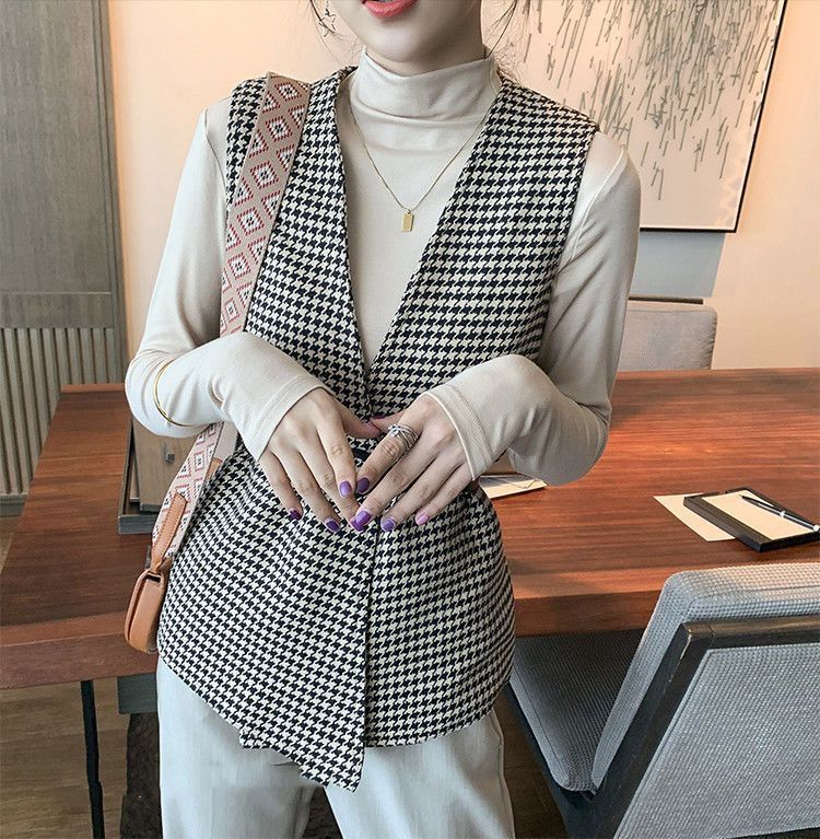 조끼 슬림 우아한 나이 감소 작은 향기로운 스타일 한국 스타일 여성 플러스 사이즈 유행 새로운 가을과 겨울 하운드 빈티지