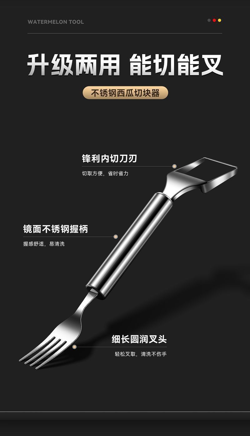 • 업그레이드 모델 [멜론 먹는 스테인리스 유물] 고급 손잡이 - 제조사 직배송 [1팩] 업그레이드된 더블 헤드 - 자르고 포크 가능