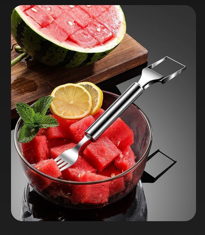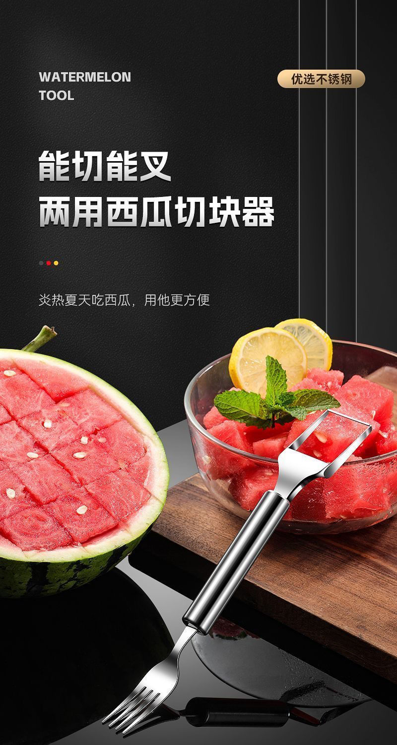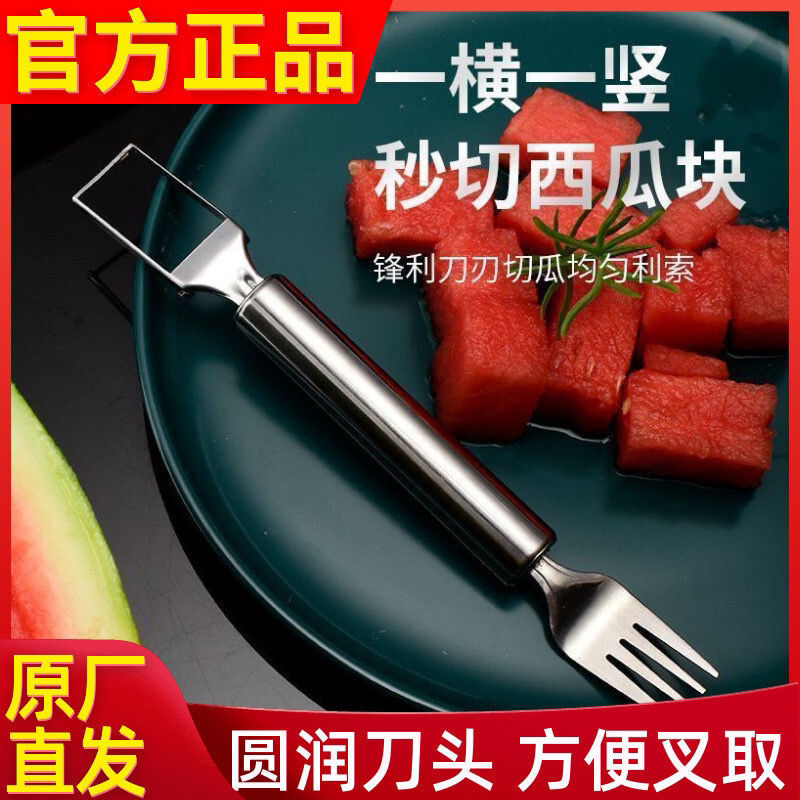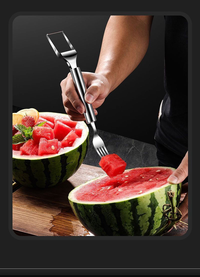 멜론 포크를 먹는 더블 헤드 아티팩트 다이싱 스테인레스 스틸 수박 이중 목적 가정용 특수 분할 주방 수박 절단스토어 가기