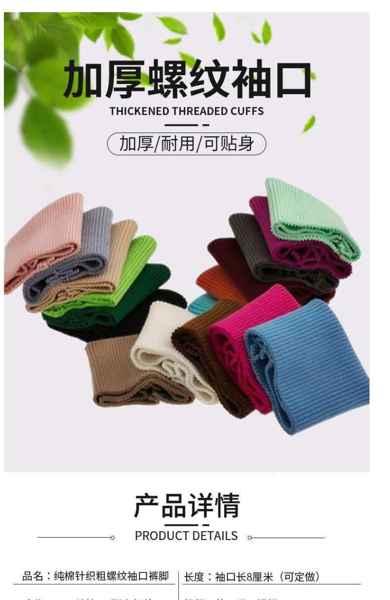 Threaded Cuff Down Jacket 두꺼운 방풍 두꺼운 머리 바지 다리 포장 탄성 니트 루오 탄성 직물 제조 업체