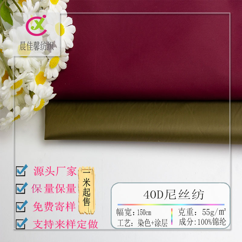 40d 나일론 방수 나일론 스판덱스 위스퍼 탄성 경량 자외선 차단 의류 피부 의류 다운 재킷 직물스토어 가기