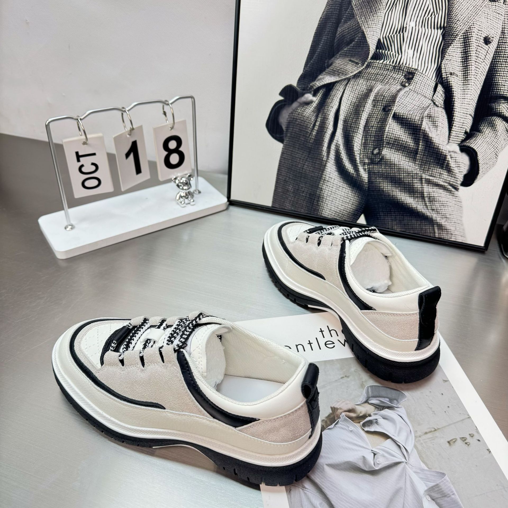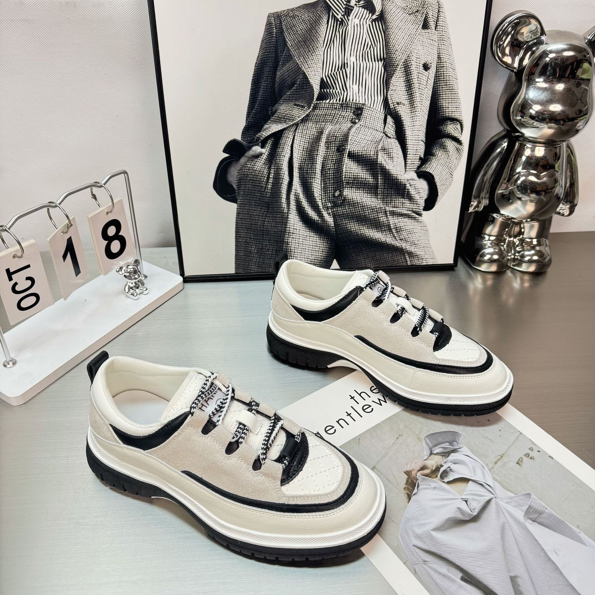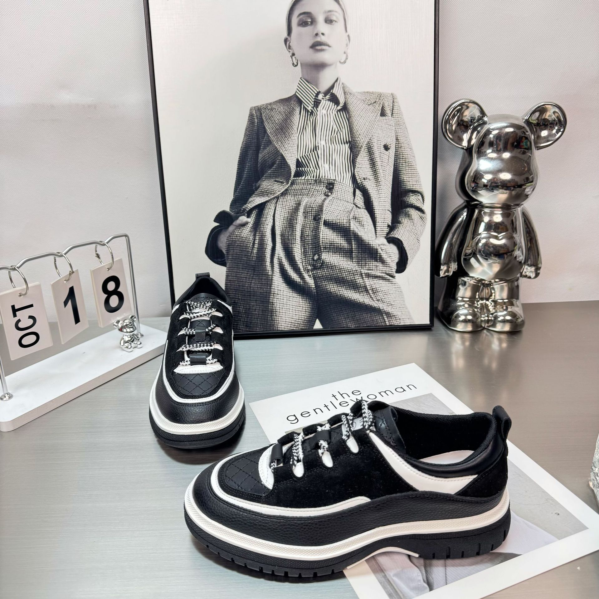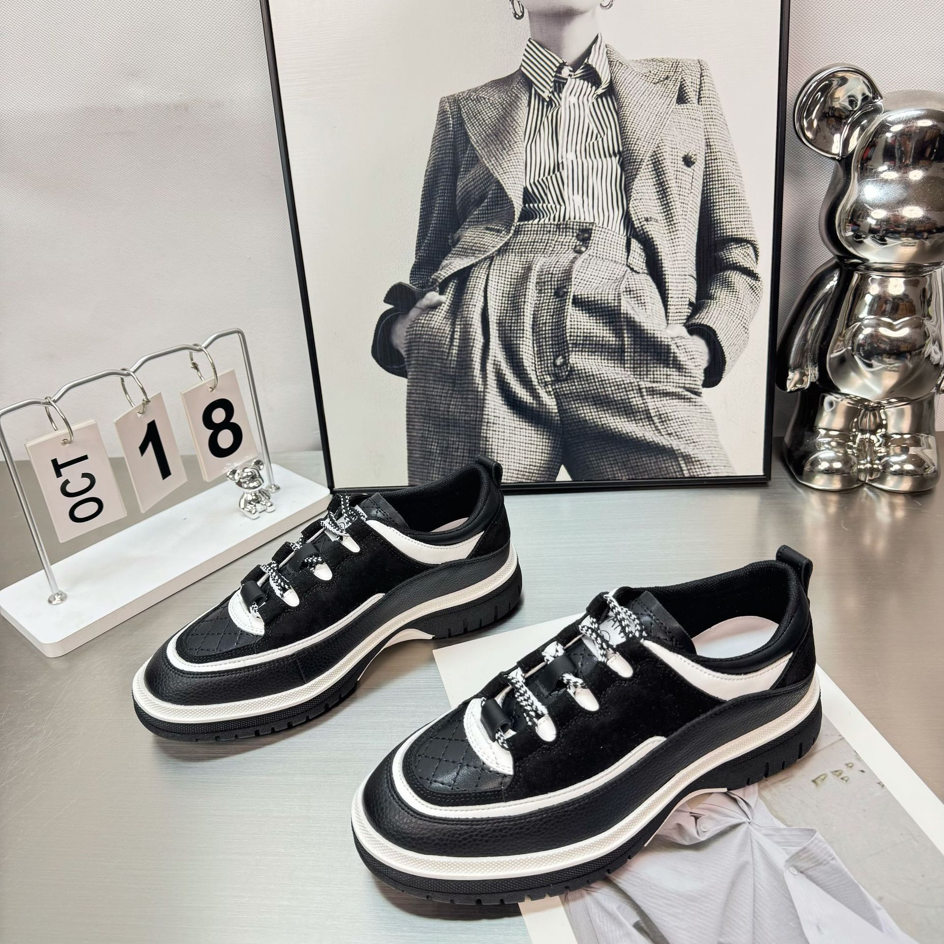 정품 가죽 여성 신발 깊은 입 캐주얼 운동화 2025 봄과 가을 새로운 스타일 샤넬 스타일 스니커즈 팬더 여성 싱글 슈즈스토어 가기