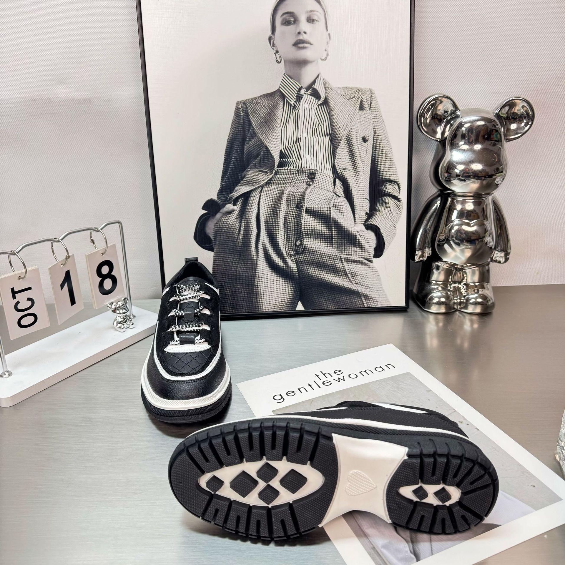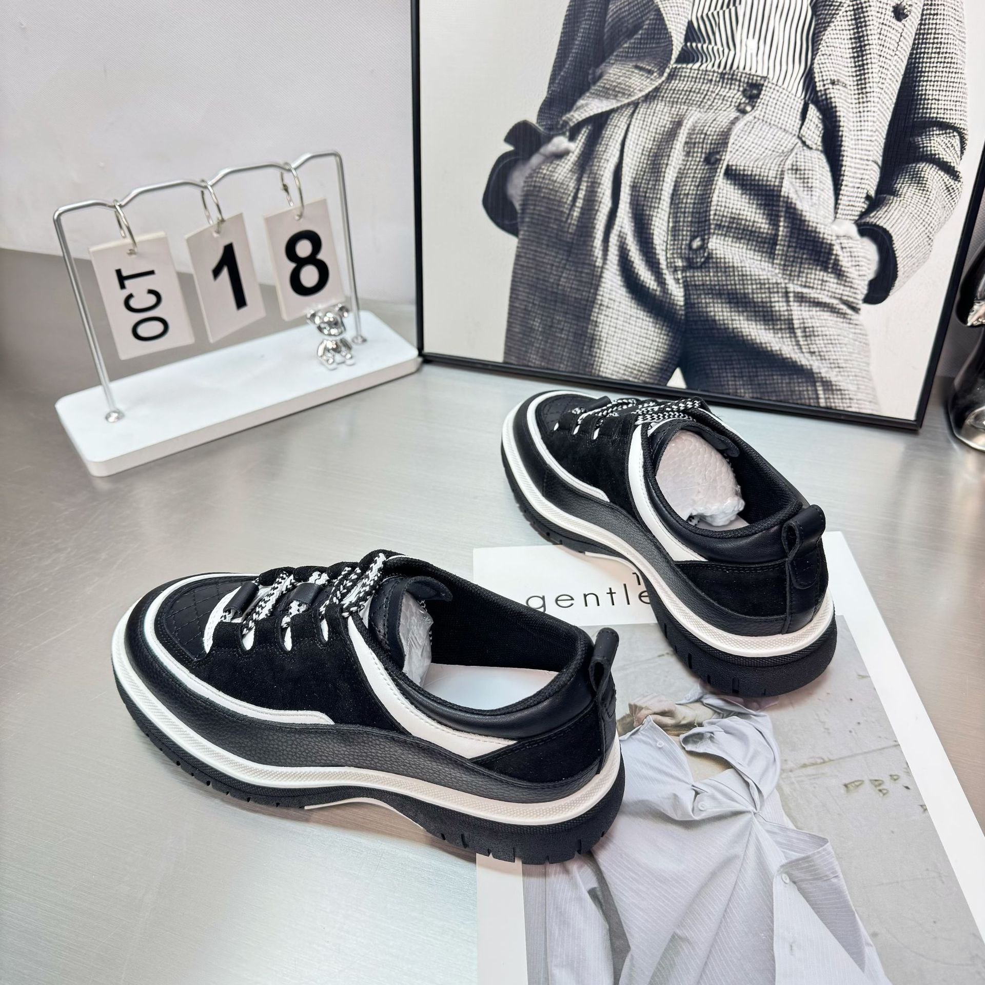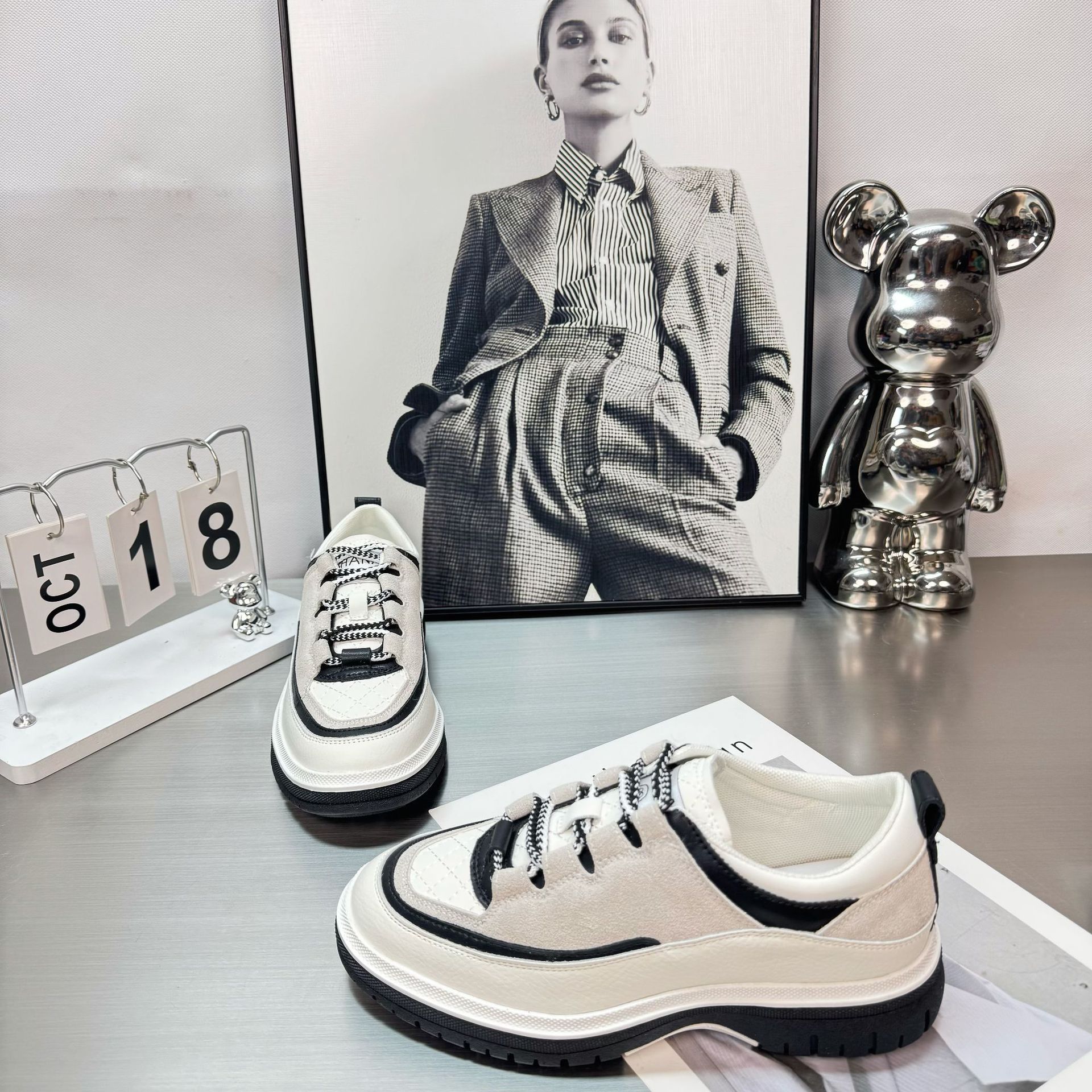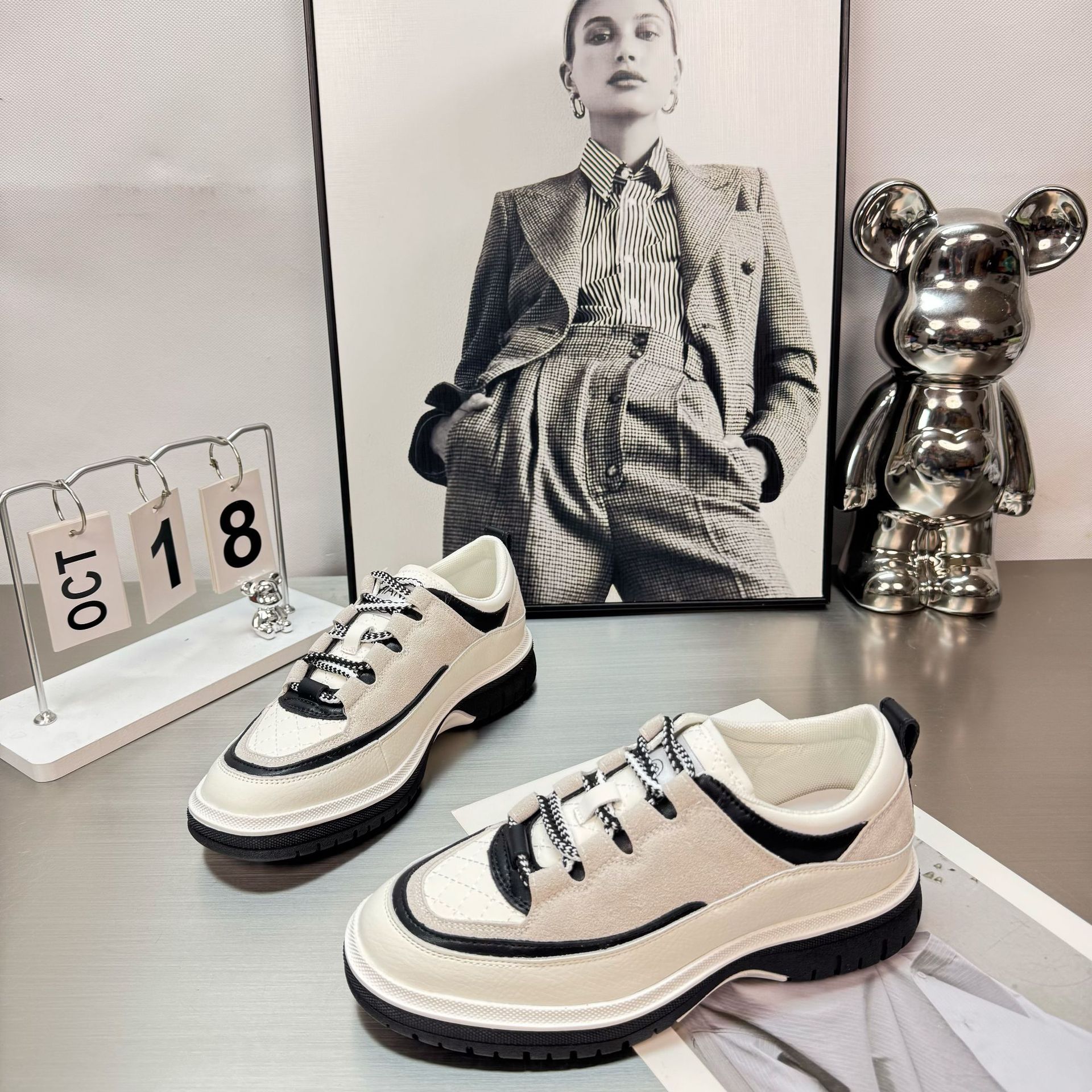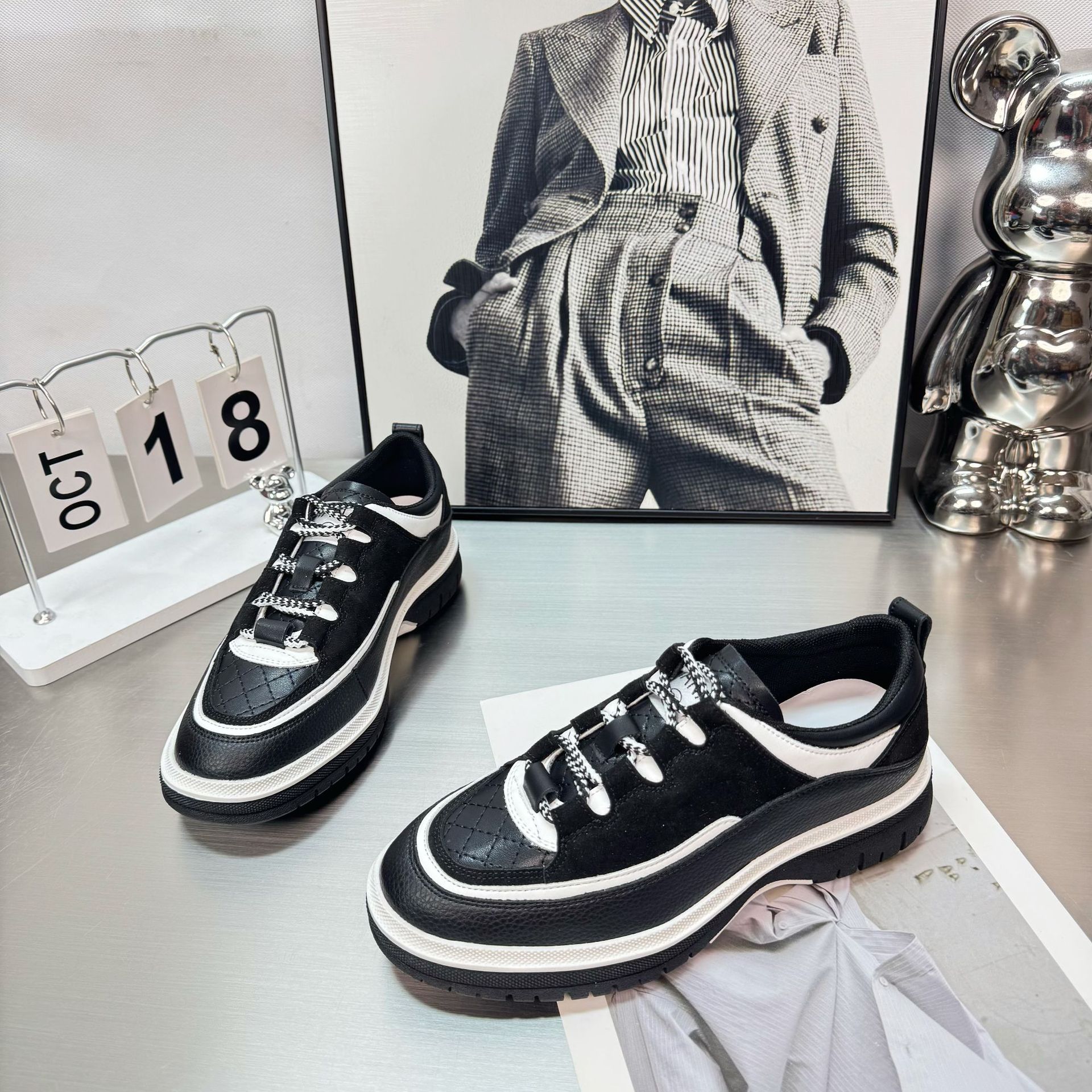 정품 가죽 여성 신발 깊은 입 캐주얼 운동화 2025 봄과 가을 새로운 스타일 샤넬 스타일 스니커즈 팬더 여성 싱글 슈즈스토어 가기