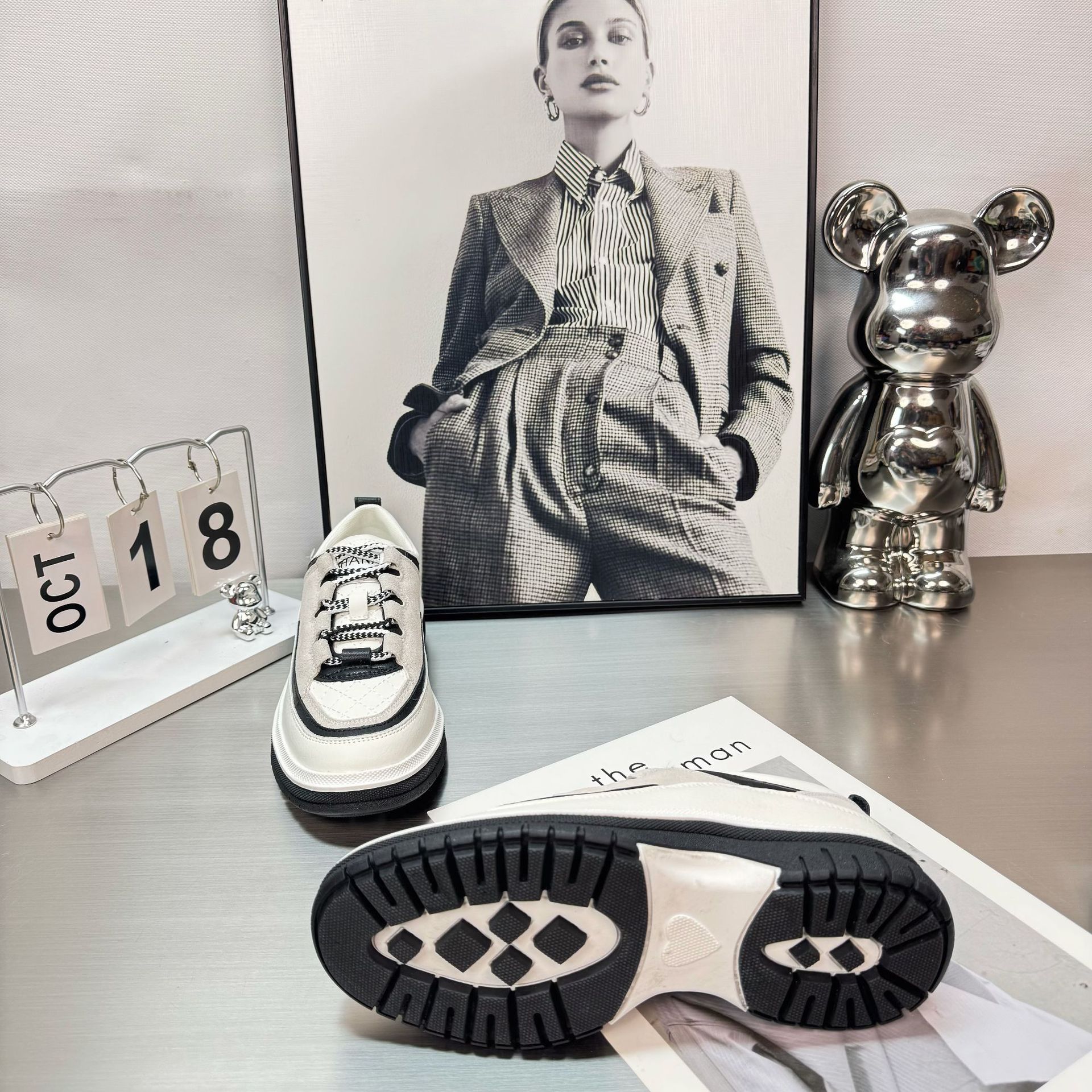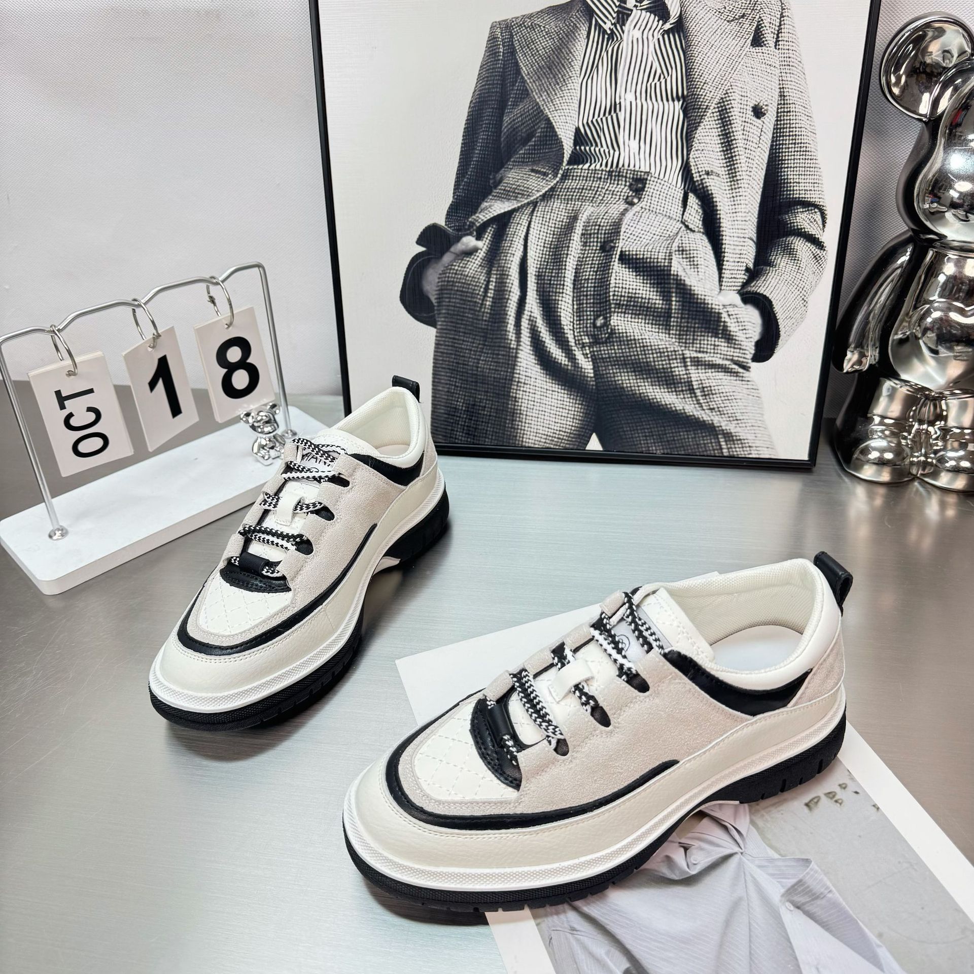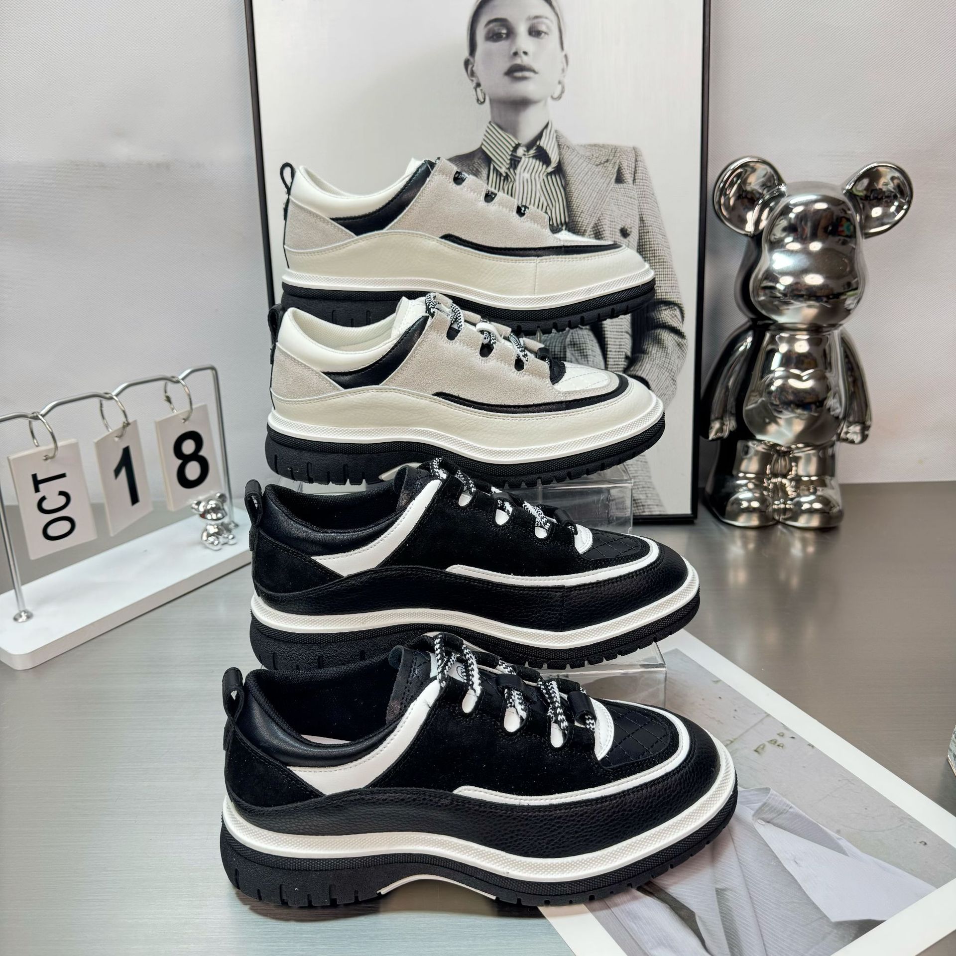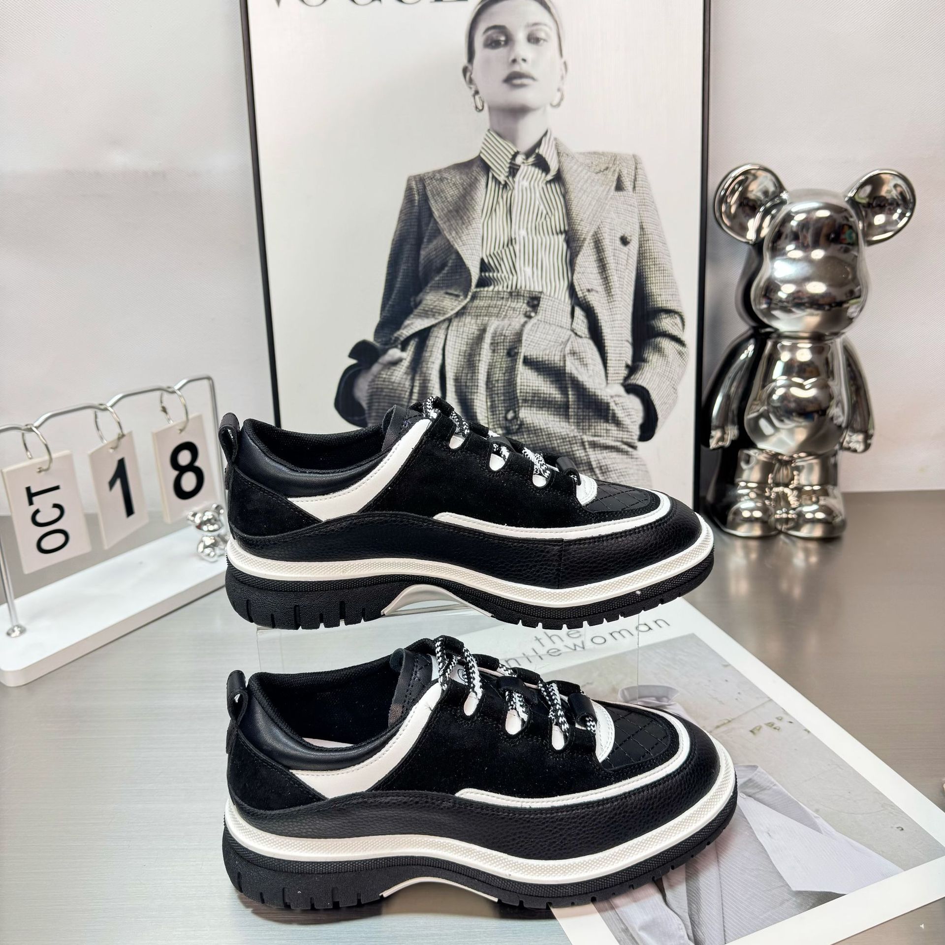 정품 가죽 여성 신발 깊은 입 캐주얼 운동화 2025 봄과 가을 새로운 스타일 샤넬 스타일 스니커즈 팬더 여성 싱글 슈즈스토어 가기