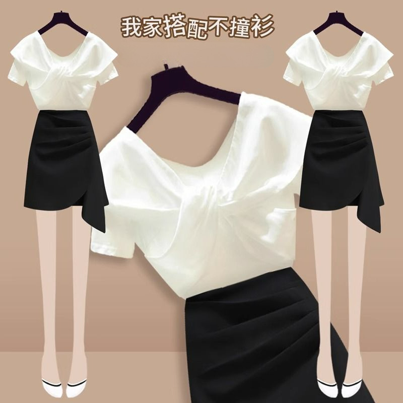 • 화이트 탑+스커트[고품질] 투피스 세트