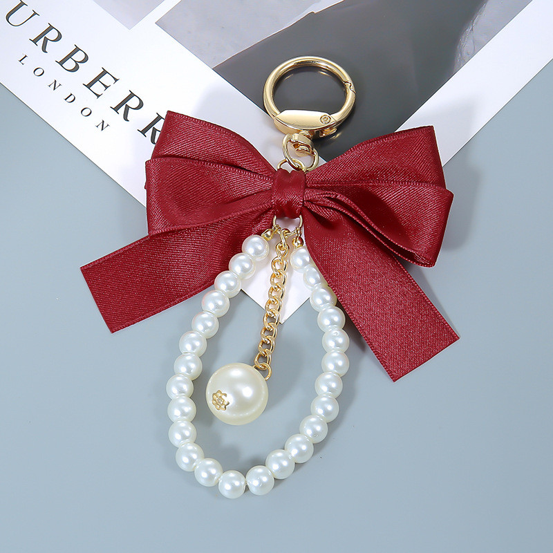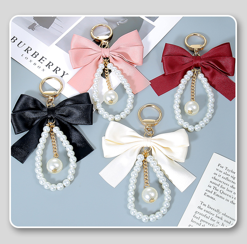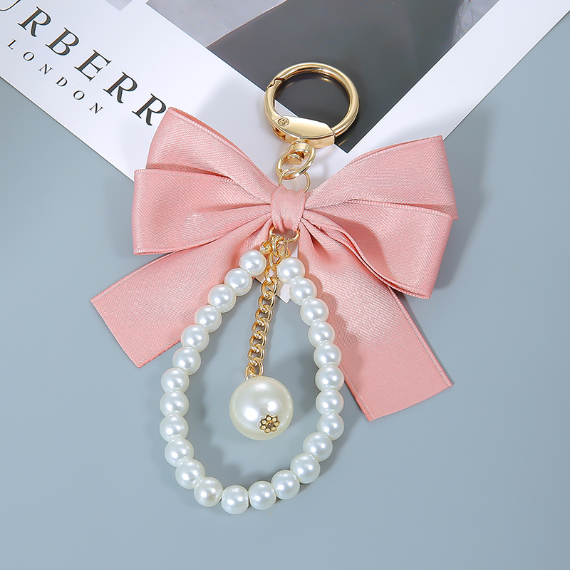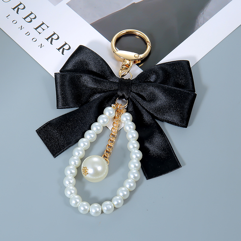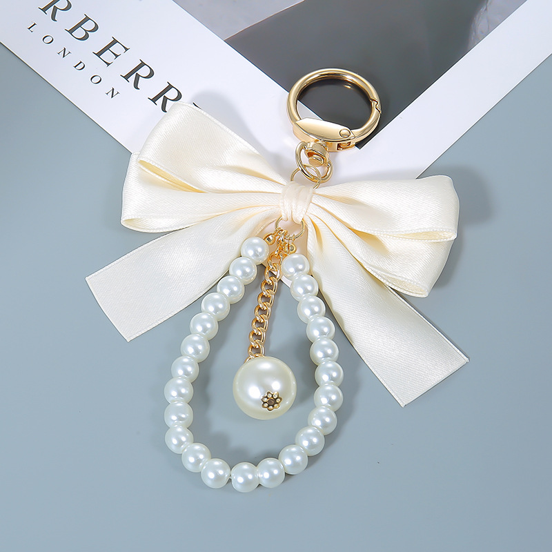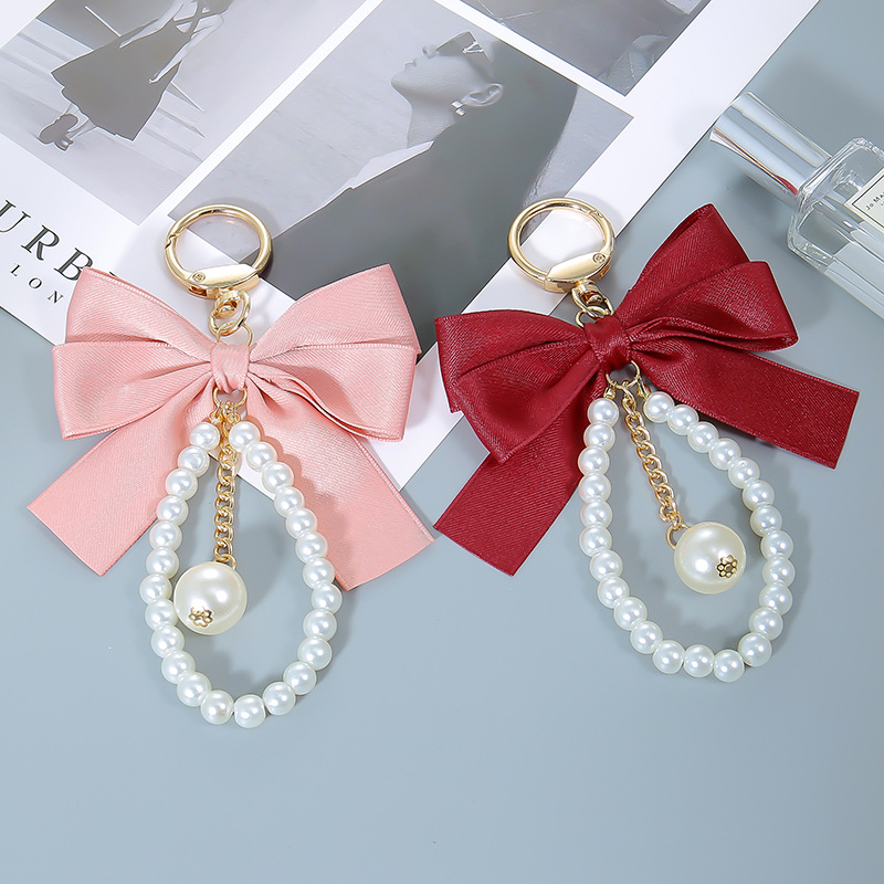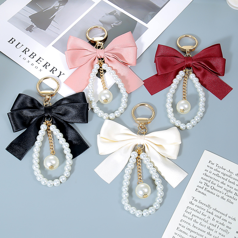 패션 큰 활 넥타이 키 체인 진주 체인 여성 자동차 키 체인 펜던트 맞춤형 핸드백 걸이 장식품