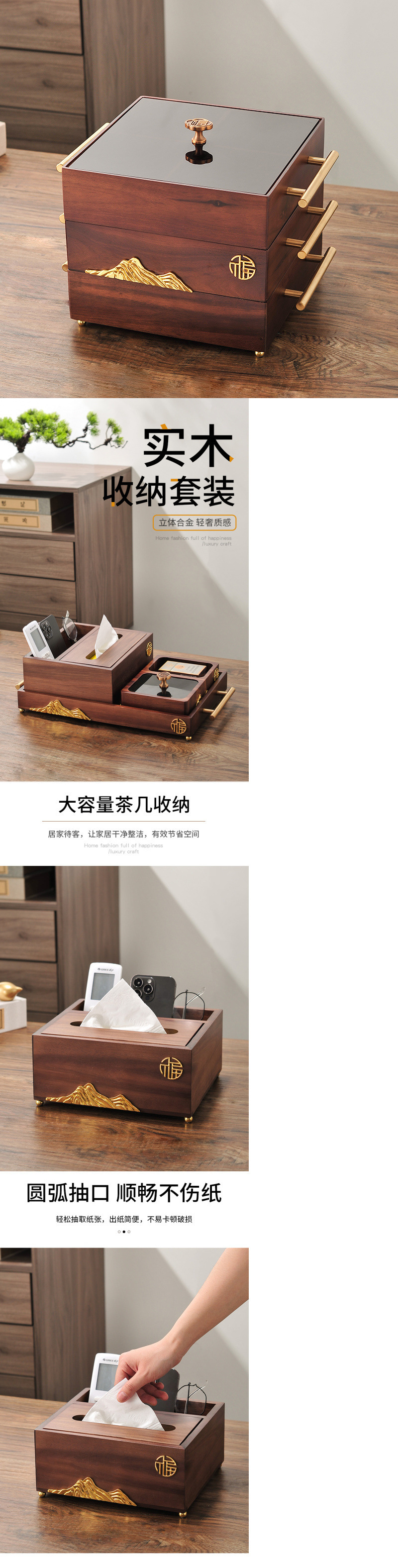 솔리드 우드 라이트 럭셔리 종이 박스 하이 엔드 새로운 중국 거실 가정용 데스크탑 커피 테이블 보관 티슈 박스 트레이 세트
