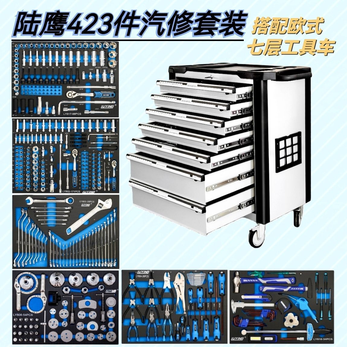 • Lu Ying 423개 + 회색 파란색 중부하 작업용 두꺼운 7층 자동 잠금 도구 트럭