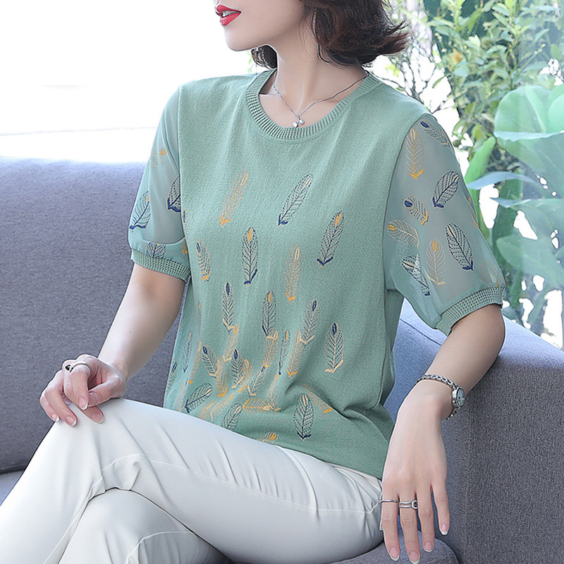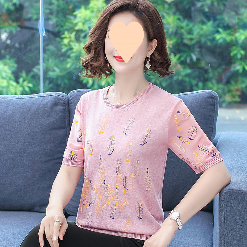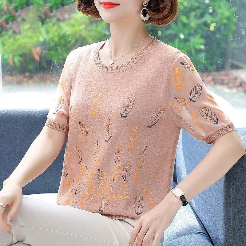 어머니의 여름 아이스 실크 반팔 셔츠 서양식 2024 새로운 중년 및 노인 여성의 여름 탑 투피스 세트스토어 가기