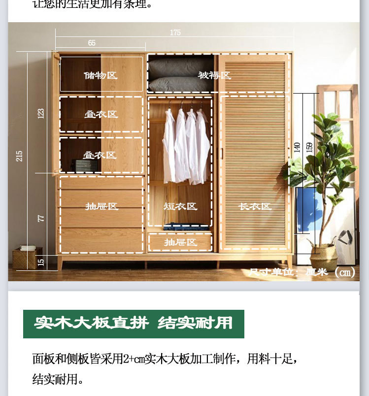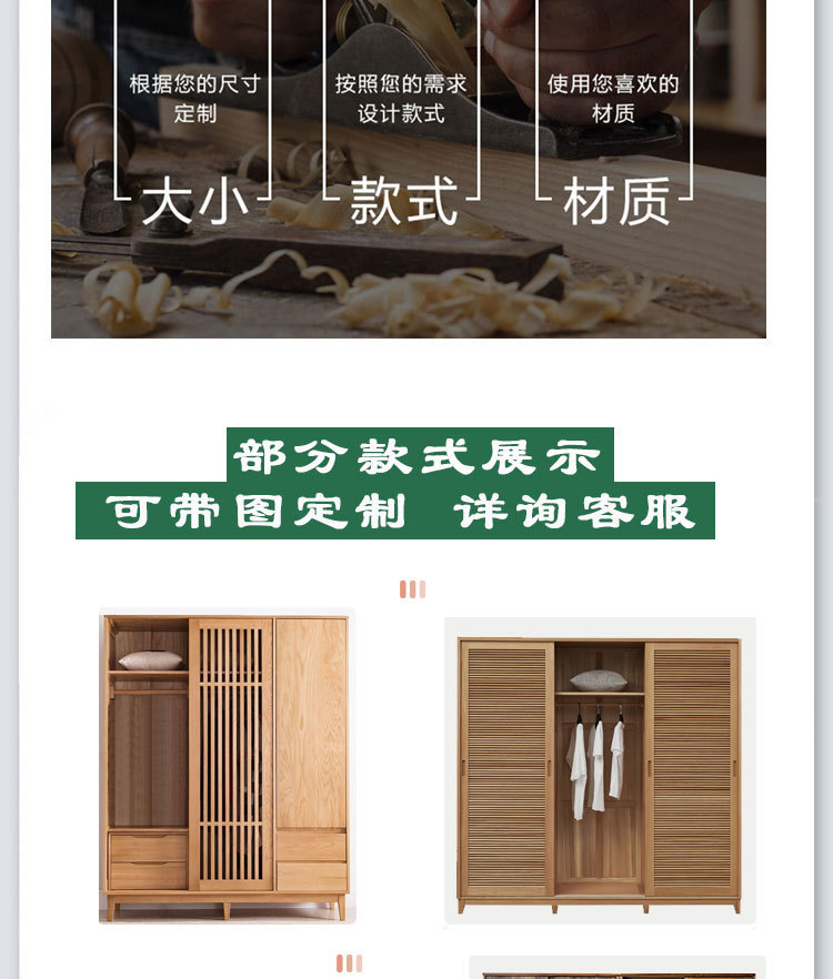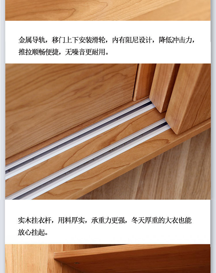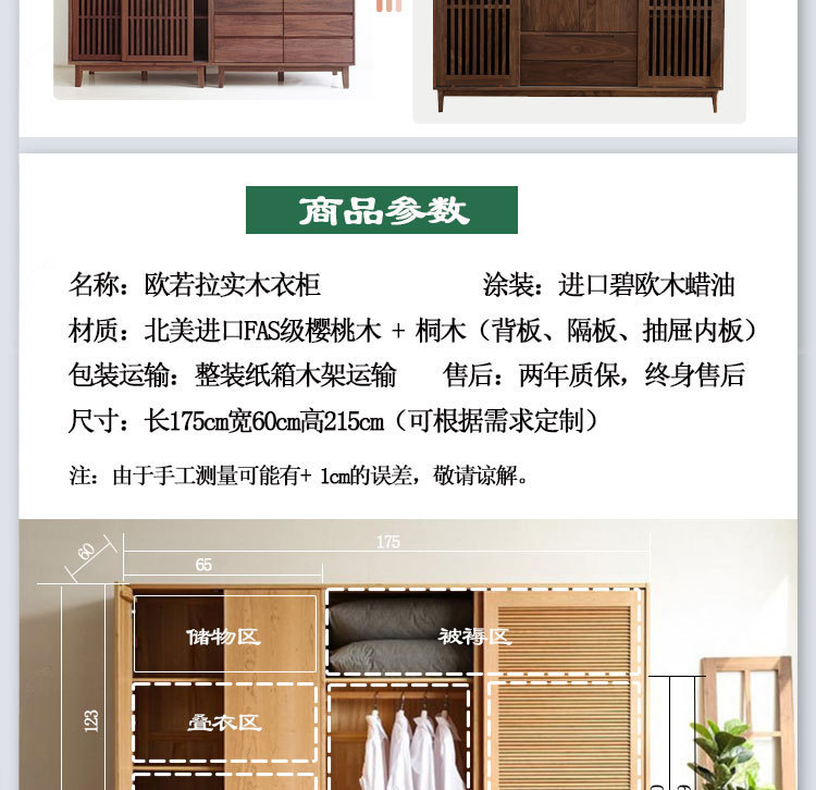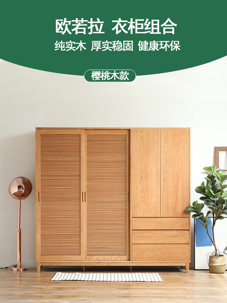 북유럽 체리 우드 로그 컬러 솔리드 우드 침실 가정용 대용량 옷장 일본식 Bmans 2 도어 옷장스토어 가기