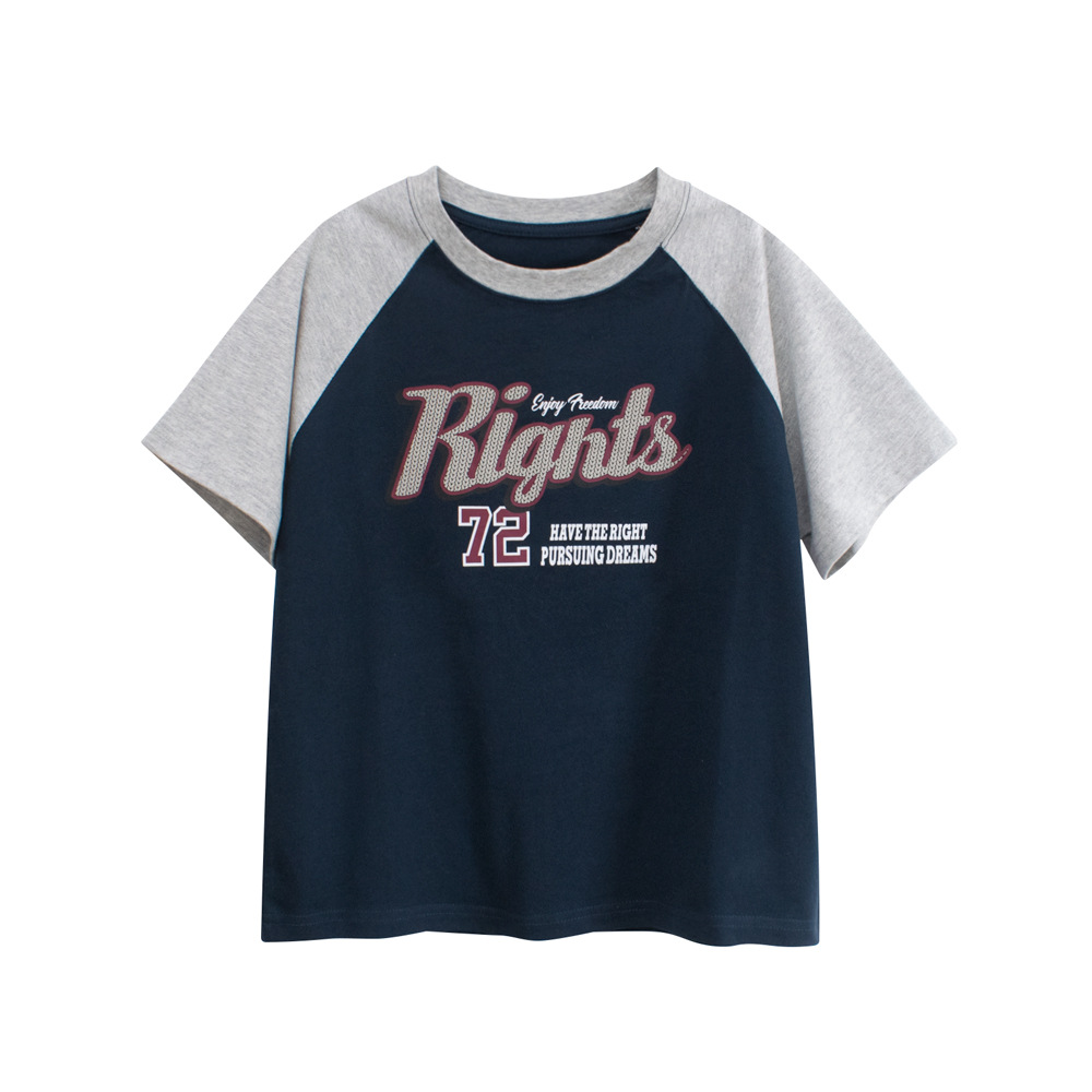 GRRR 아동복 편지 반팔 티셔츠 2025 여름 새 라운드 넥 느슨한 소년 소녀 부모-자식 옷스토어 가기