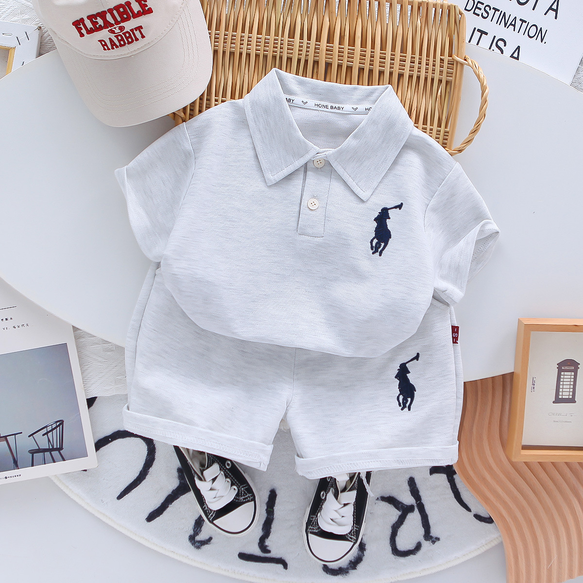 여름 어린이 의류 국경 공장 도매 0-6 세 POLO 짧은 소매 2 조각 스웨트 폴로 남성 및 여성 어린이 세트스토어 가기