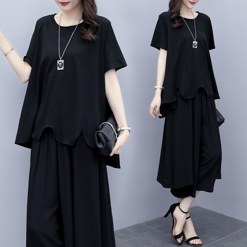 싱글/세트 플러스 사이즈 여성 여름 넓은 다리 바지 세트 스타일리스트 연령 감소 배꼽 숨기기 슬리밍 투피스 세트