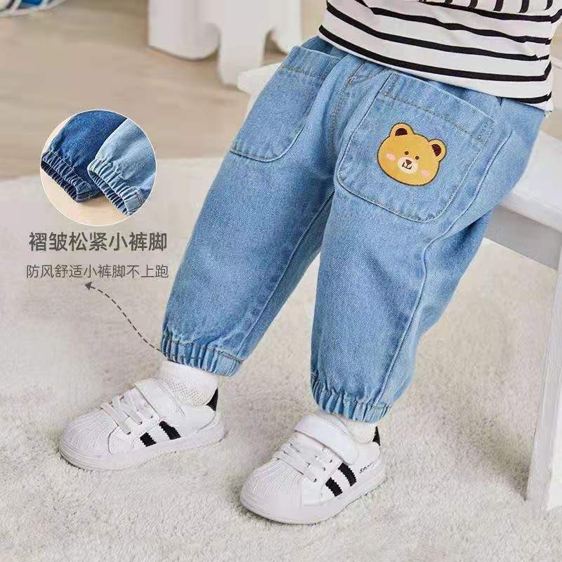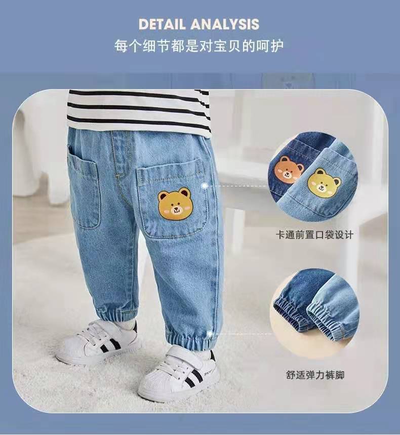 아기 청바지 봄과 가을 외부 착용 소년 캐주얼 바지 어린이 착용 큰 PP 바지 소녀 어린이 겨울 착용 아기 바지스토어 가기