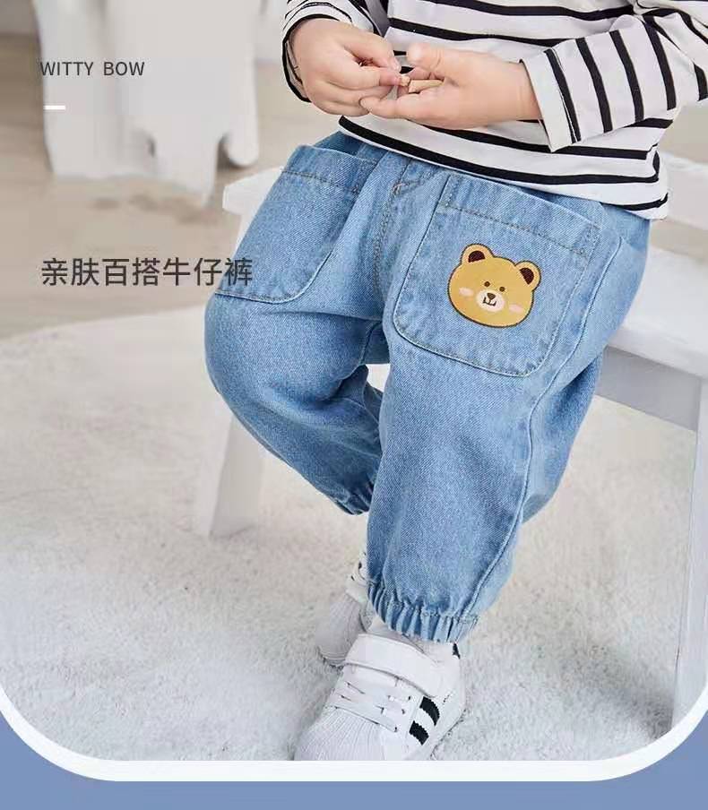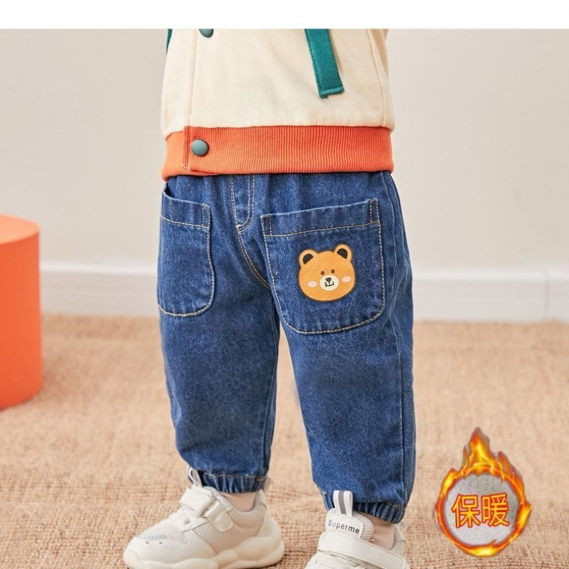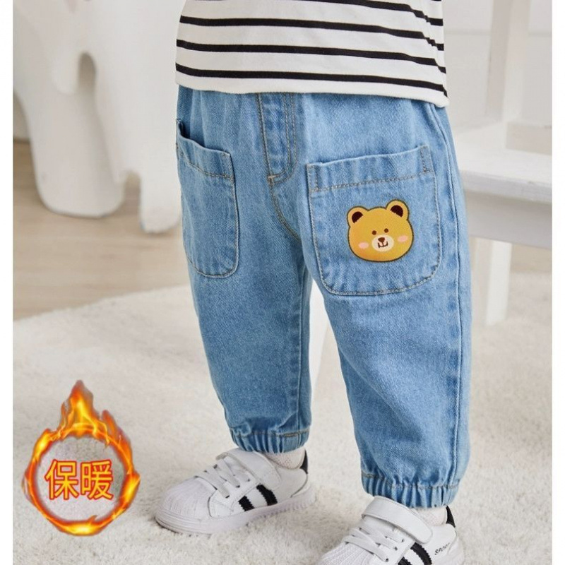 아기 청바지 봄과 가을 외부 착용 소년 캐주얼 바지 어린이 착용 큰 PP 바지 소녀 어린이 겨울 착용 아기 바지