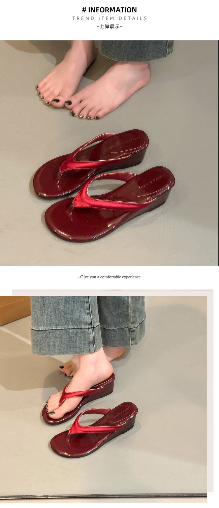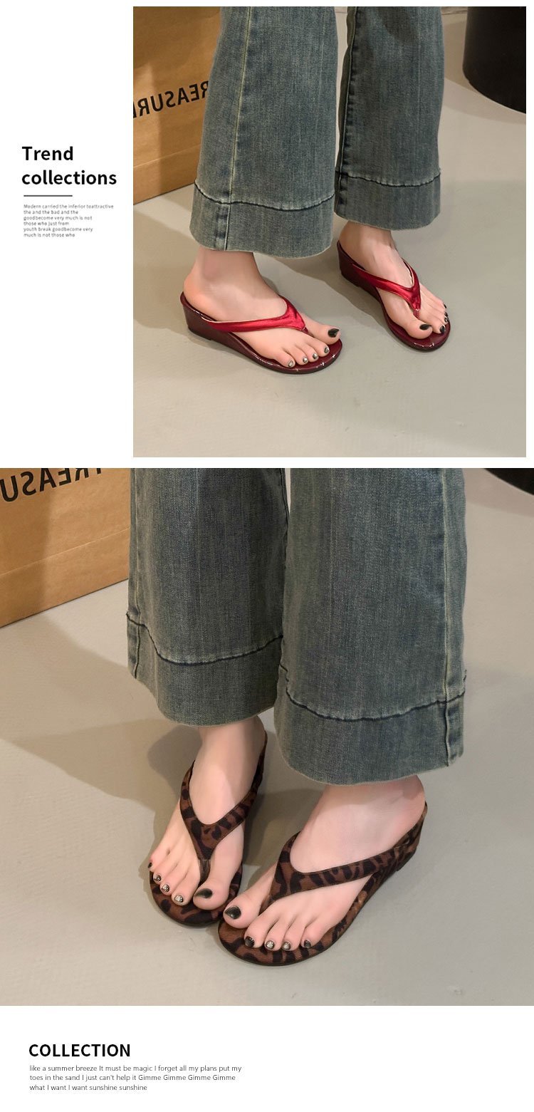 빈티지 레드 웨지 힐 두꺼운 슬리퍼 여성용 봄과 여름 아웃웨어 샌들 여성용 신발 샌들스토어 가기