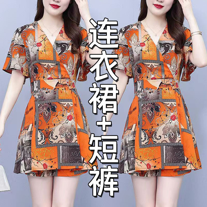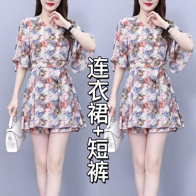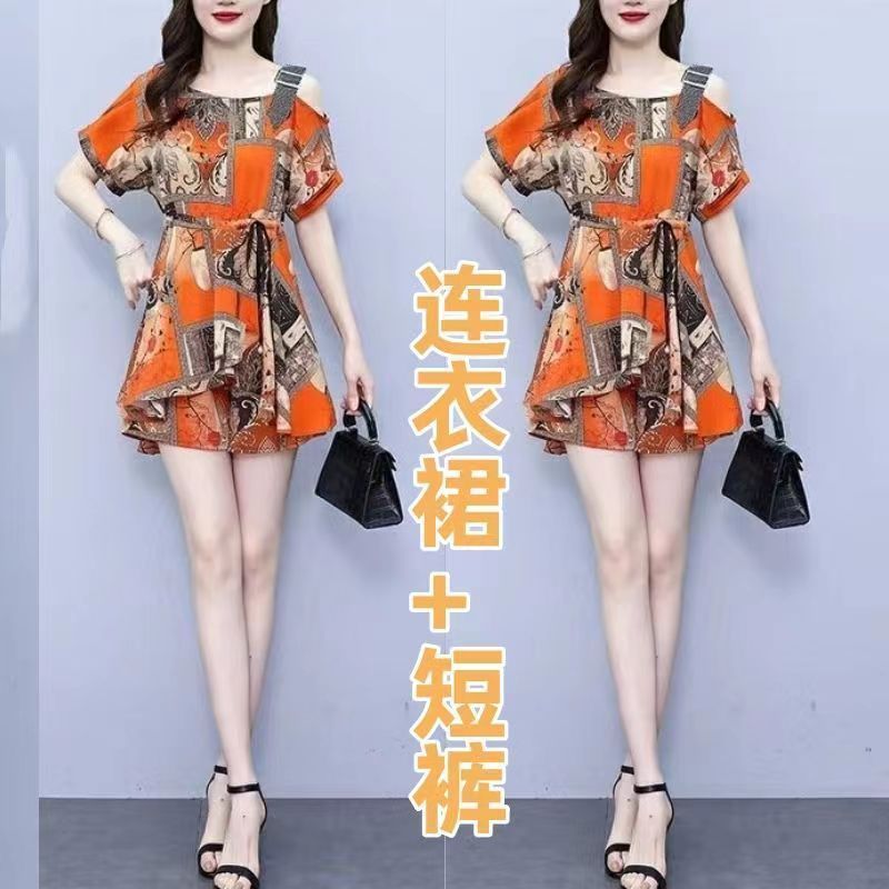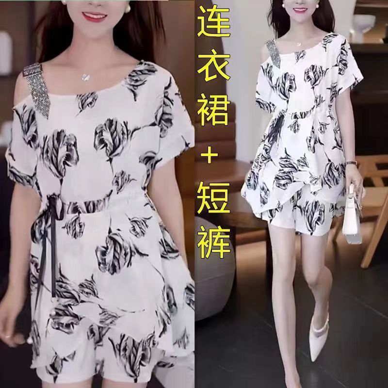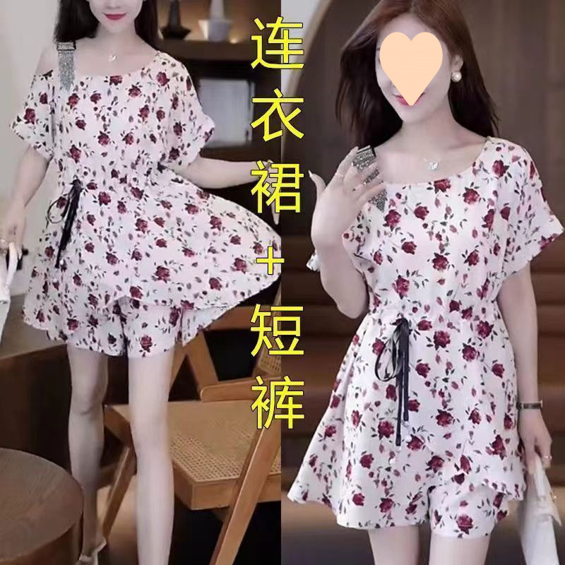 샤오 샹 스타일 요정 어깨 디자인 탑 세트 슬리밍 우아한 여름 꽃 허리 타이트 나이 감소 유행 원피스