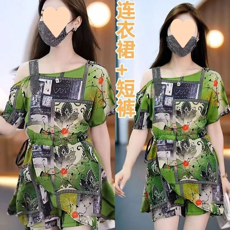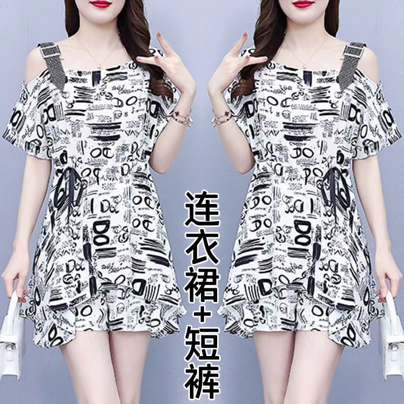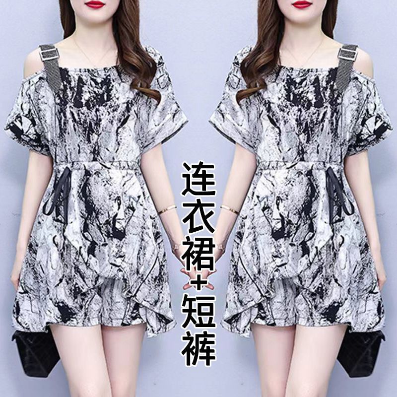 샤오 샹 스타일 요정 어깨 디자인 탑 세트 슬리밍 우아한 여름 꽃 허리 타이트 나이 감소 유행 원피스스토어 가기