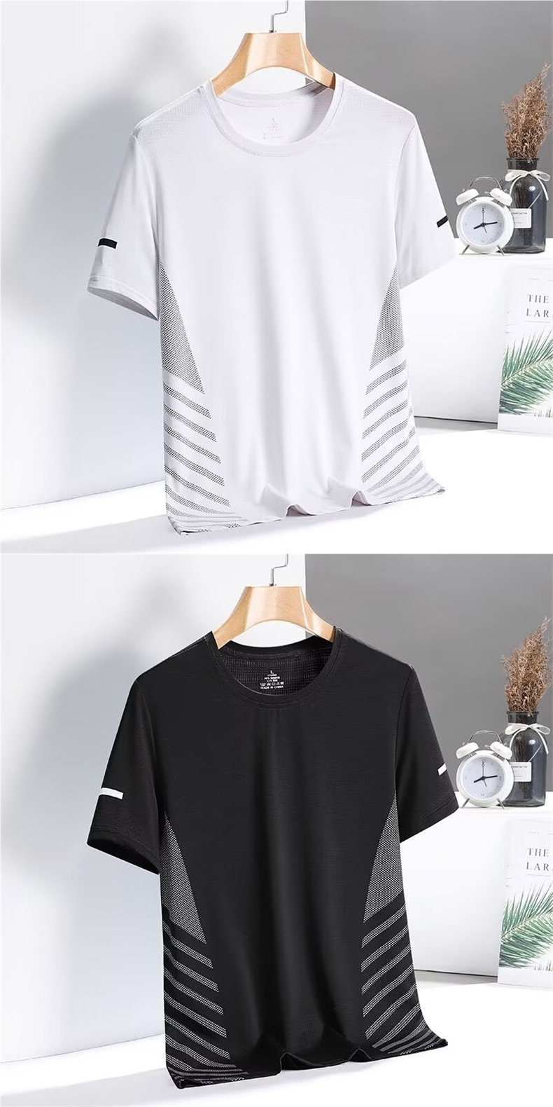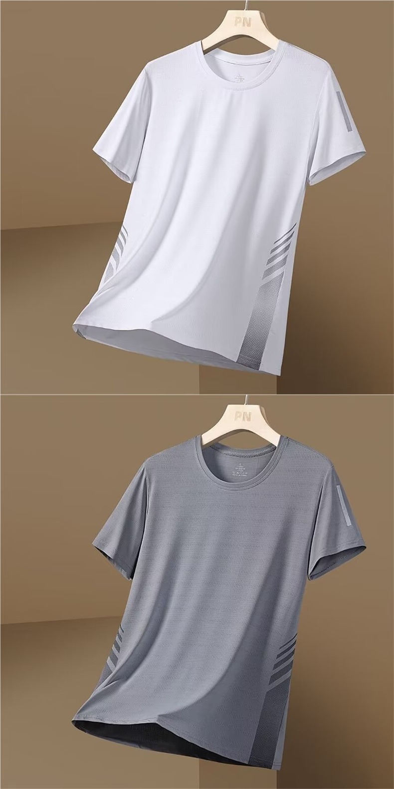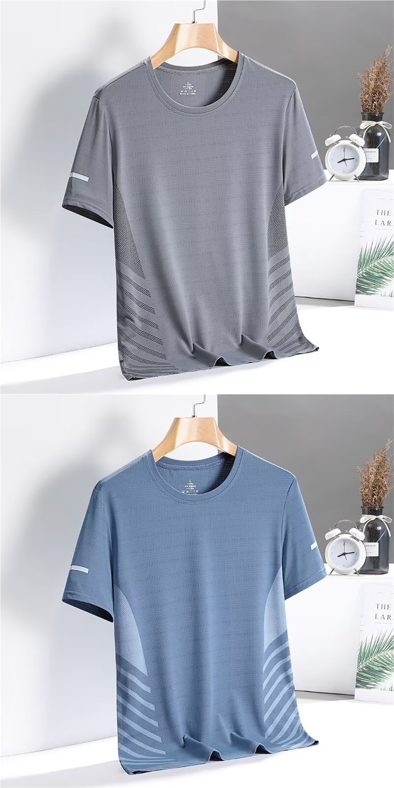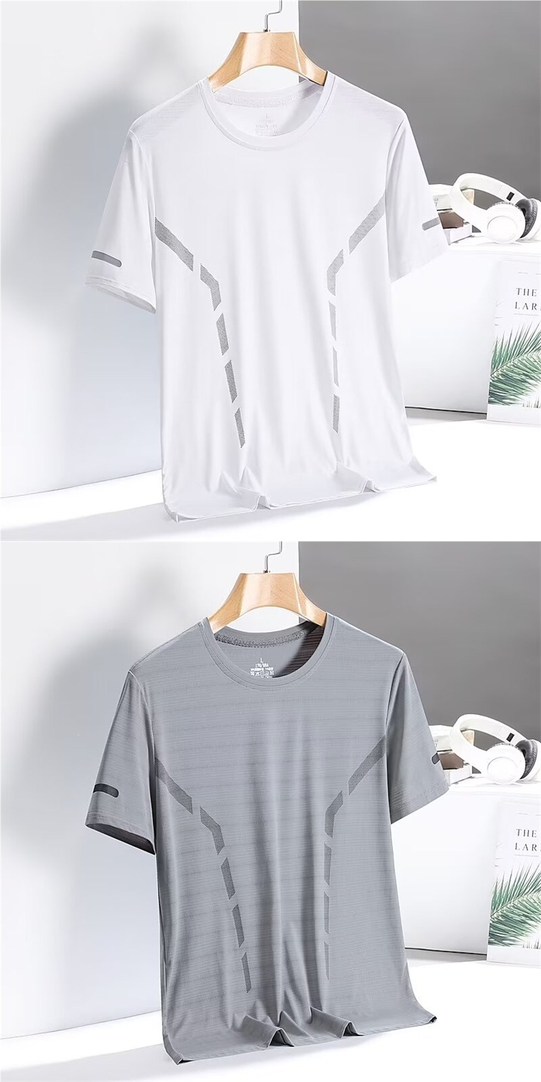 여름 새 남자 아이스 실크 반팔 티셔츠 얇은 캐주얼 느슨한 플러스 사이즈 반팔 티셔츠 둥근 목 빠른 건조 탑스토어 가기
