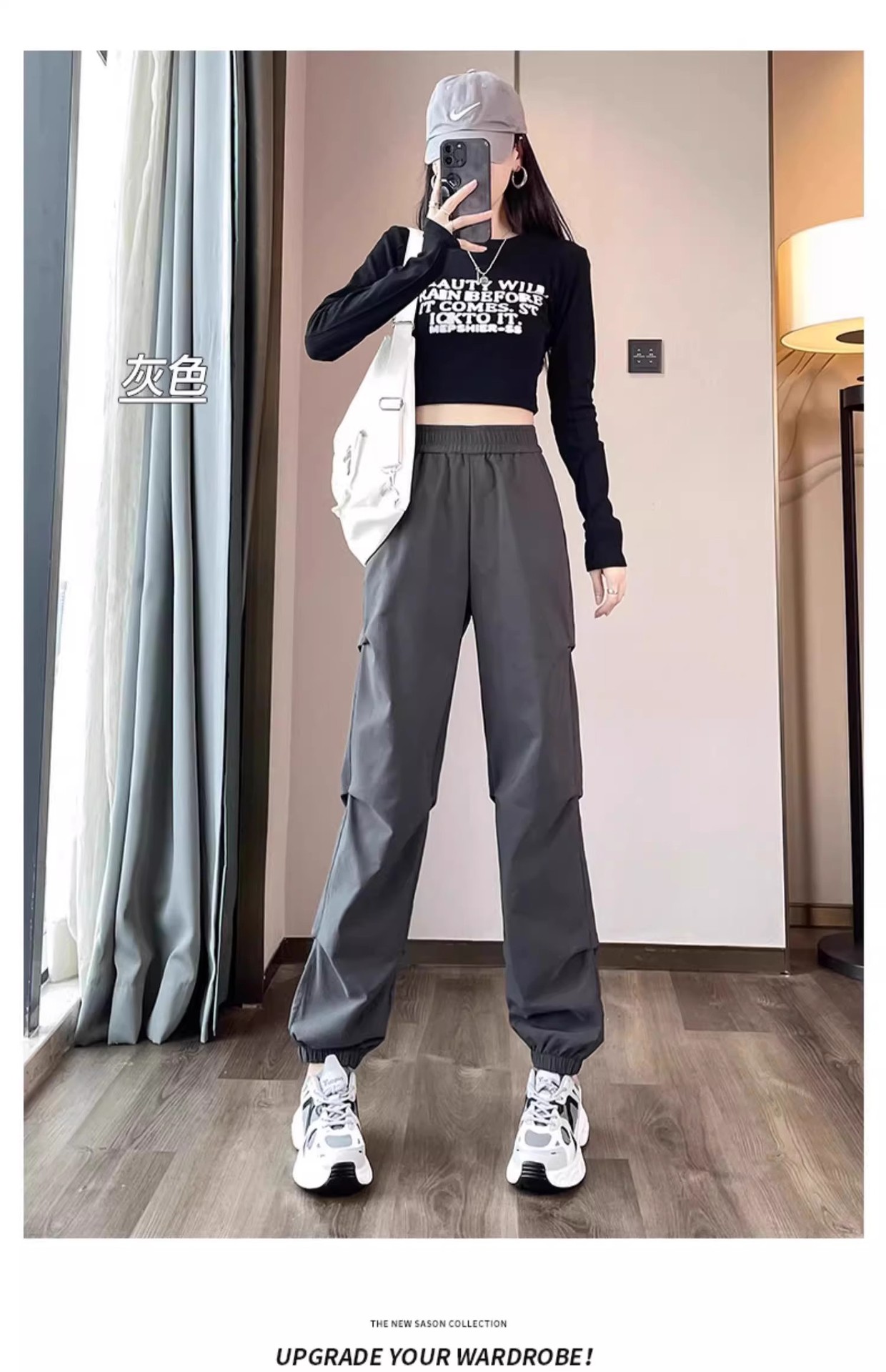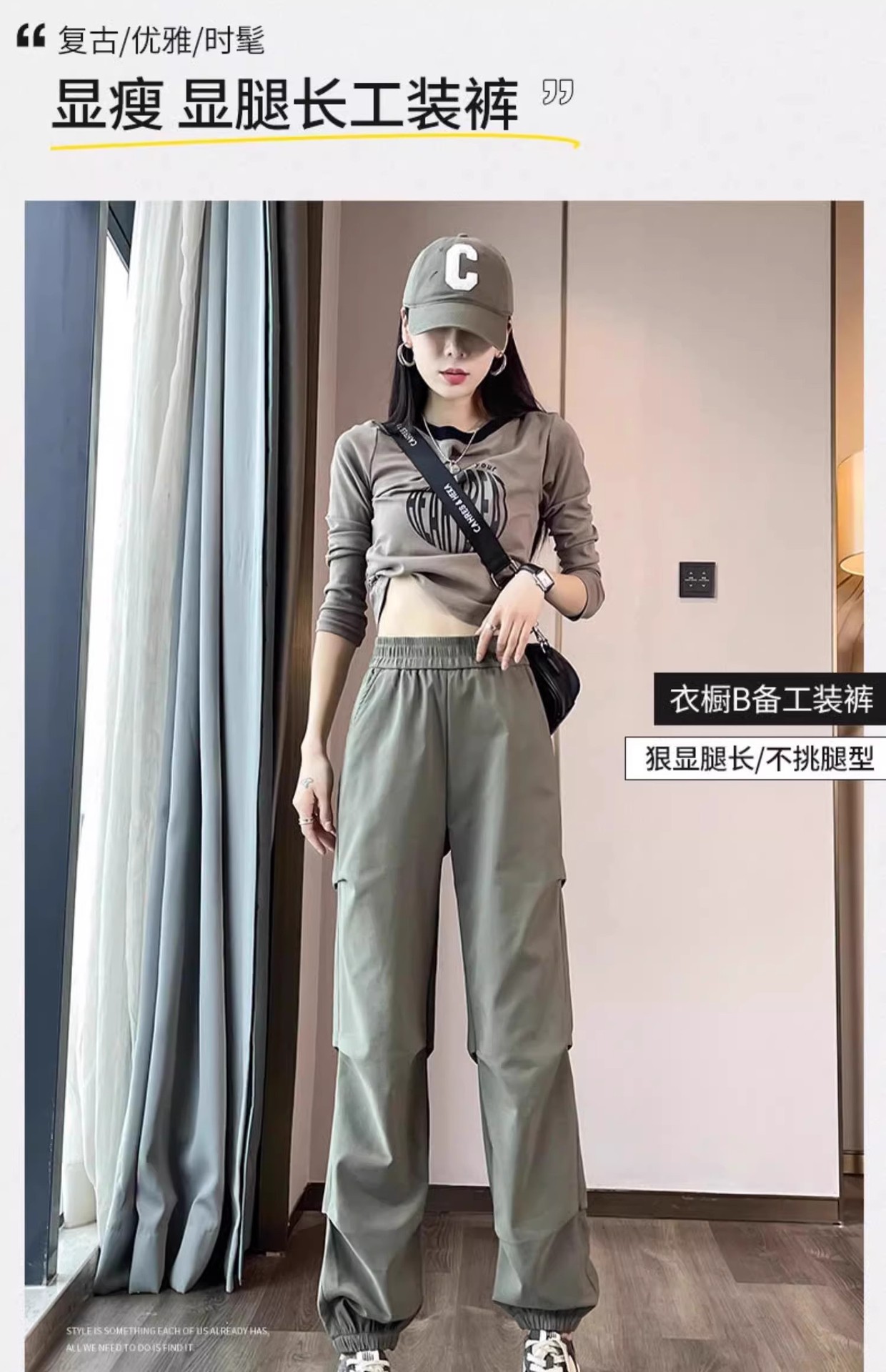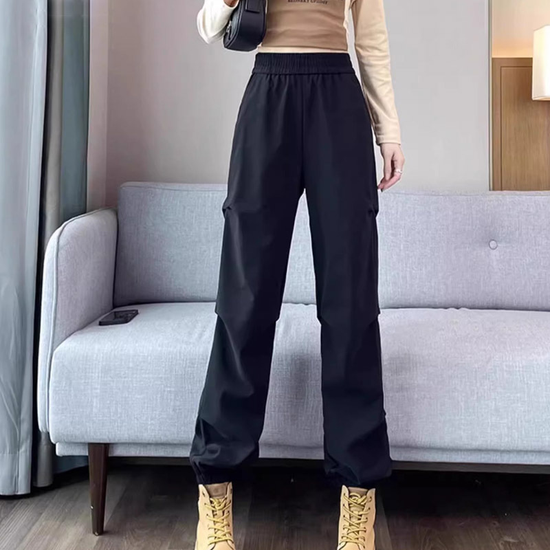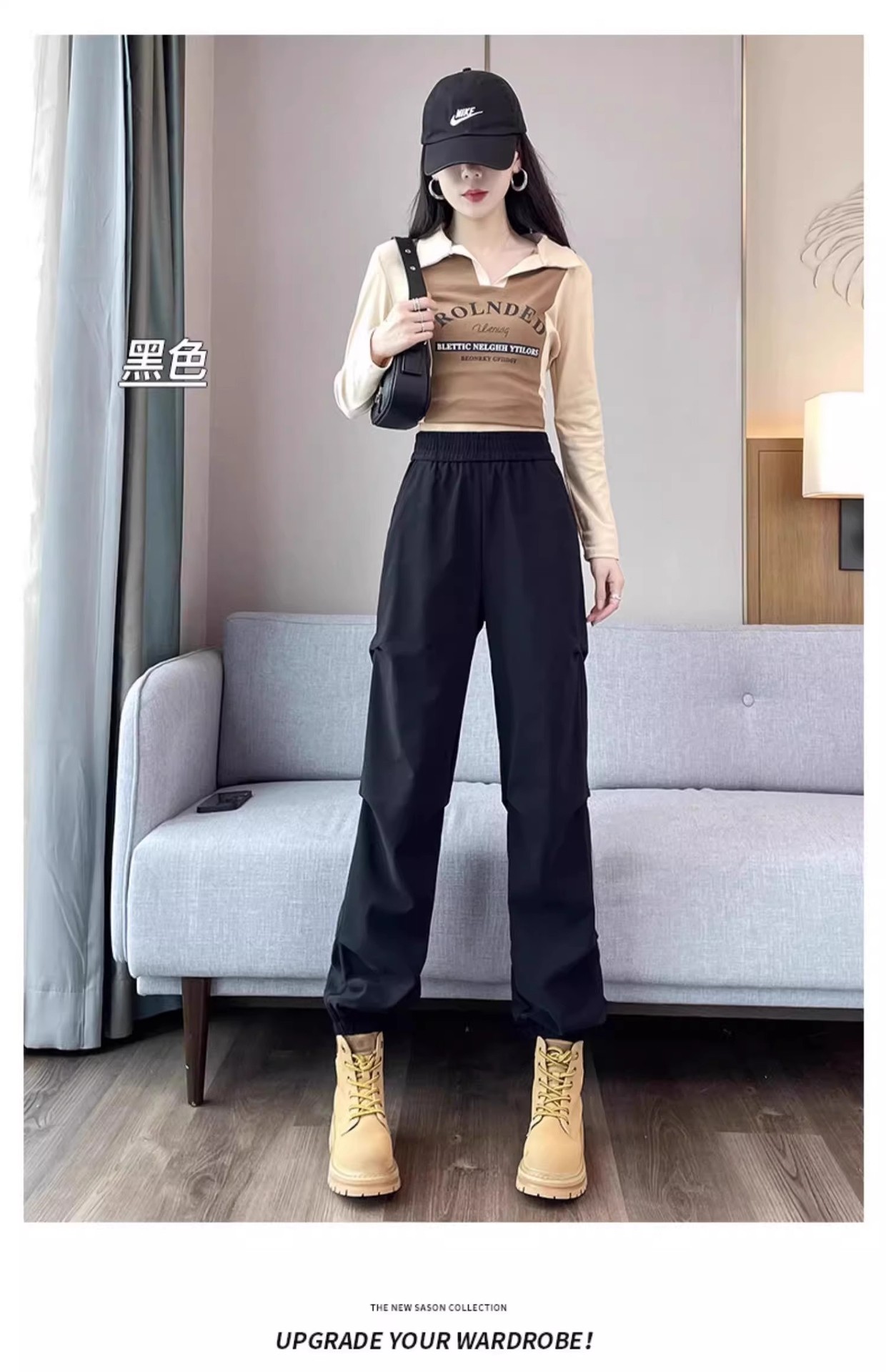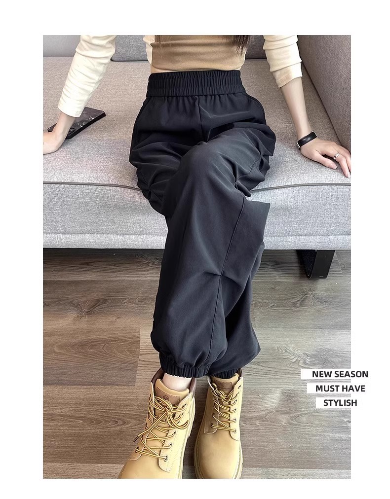 미국식 기모 툴링 와이드 레그 팬츠 여성용 가을과 겨울 하이 웨이스트 루즈 레트로 슬리밍 캐주얼 발 발가락 등산 스포츠 바지스토어 가기