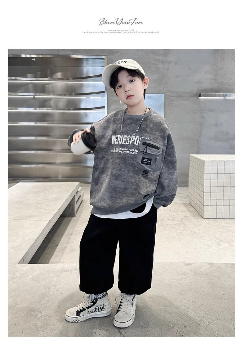 남학생 봄땀 2025 신설 봄 · 가을 어린이 한식 리퍼 중ㆍ빅 보이즈 손수건 롱슬리브 루즈 탑스토어 가기