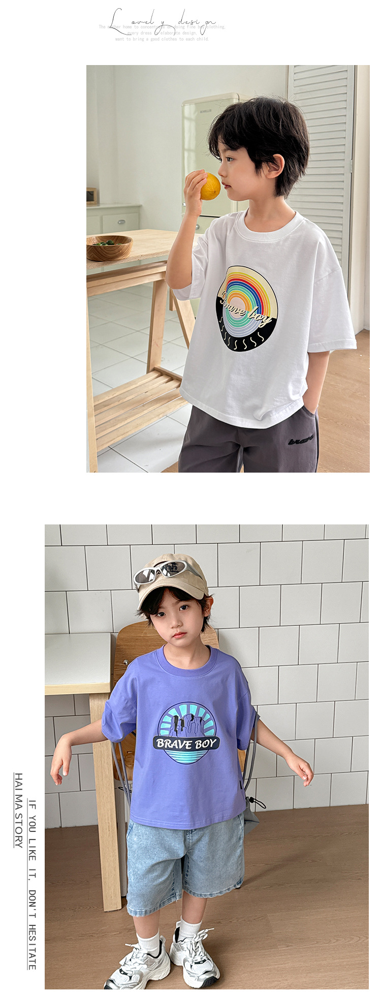 Haima의 2025 새로운 여름 스타일 시원한 얼음 피부 순수 면화 반팔 티셔츠 소년과 소녀를위한 만화 프린트 여름 옷스토어 가기