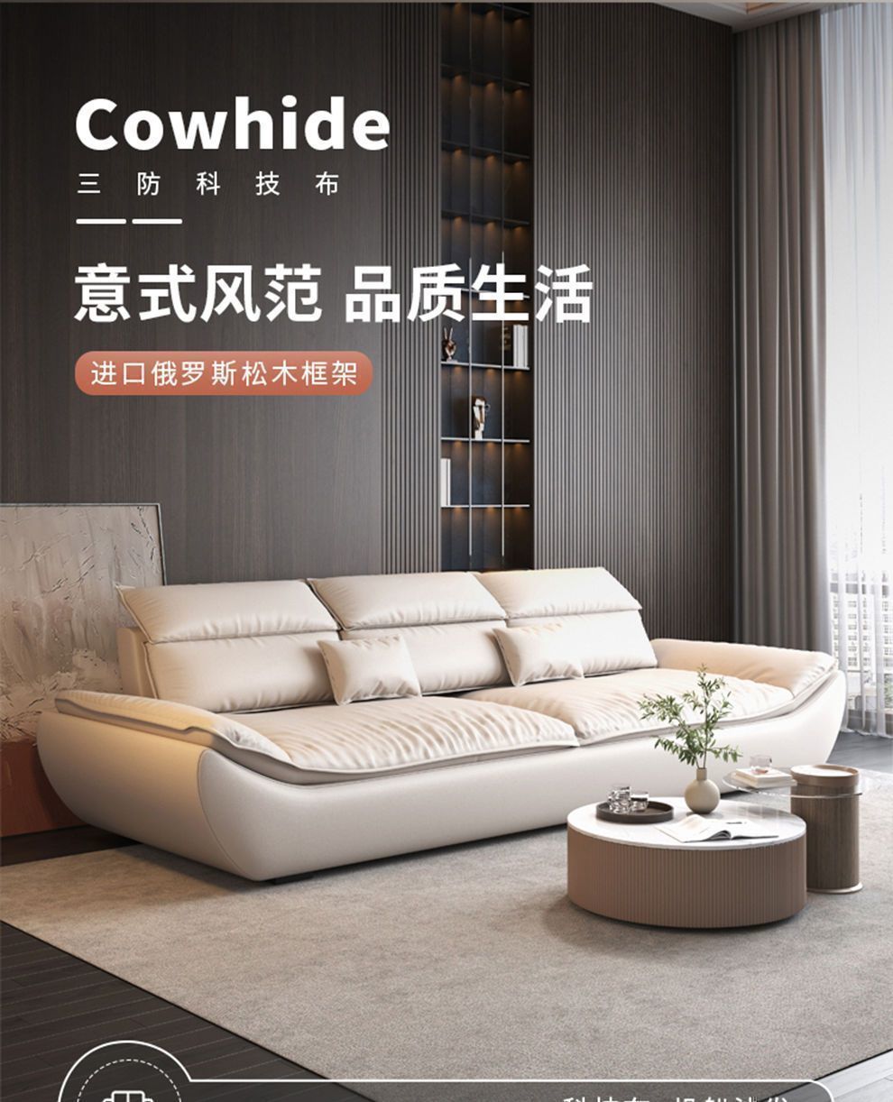 이탈리아 스타일 미니멀리스트 탑 레이어 카우보이 항해 소파 슈퍼 와이드 앉아 깊은 가죽 2025 새로운 스타일 복고풍 스타일 거실 소파