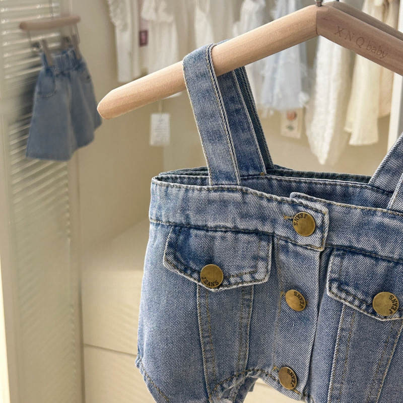 여자 데님 세트 어린이 2025 새 조끼 투피스 세트 여름 아기 캐주얼 한국식 아동복 원피스