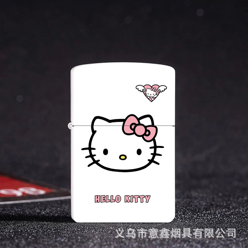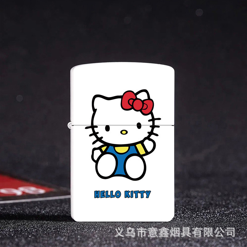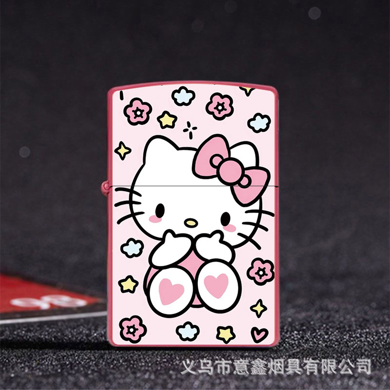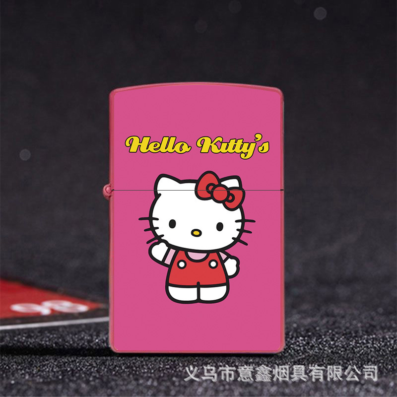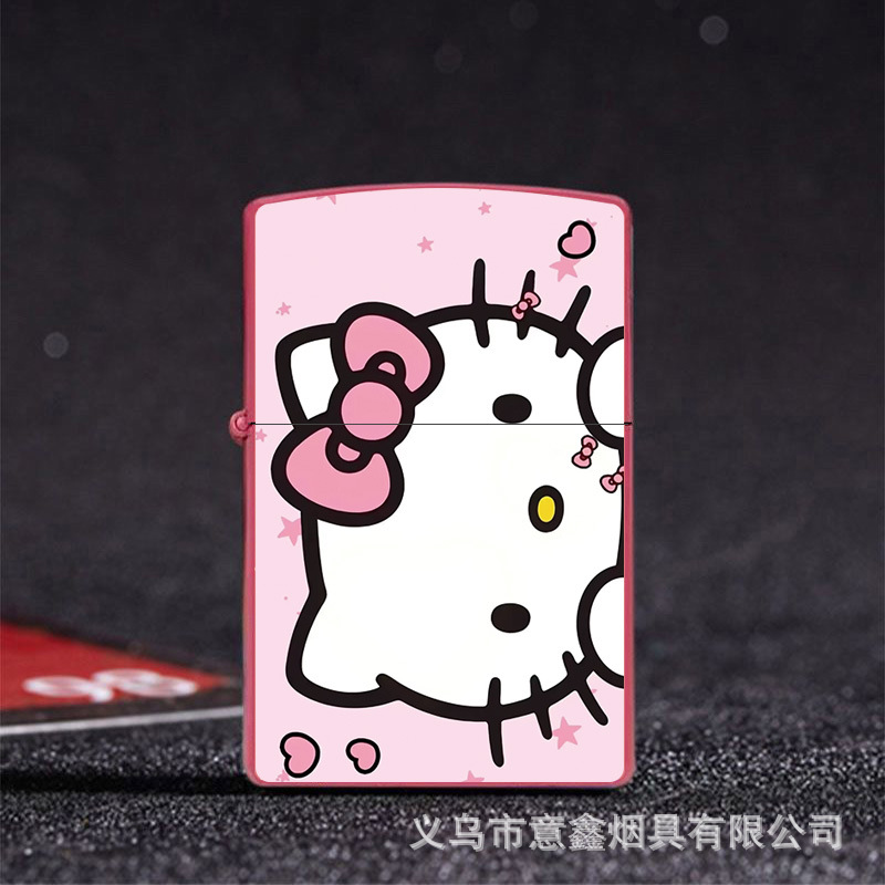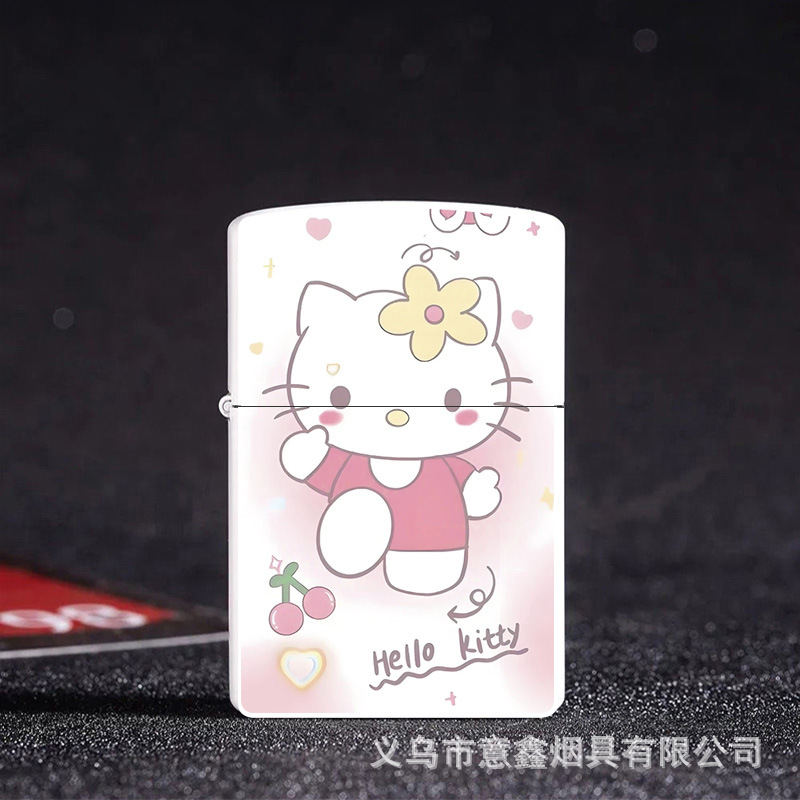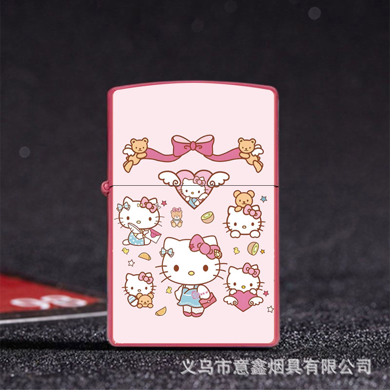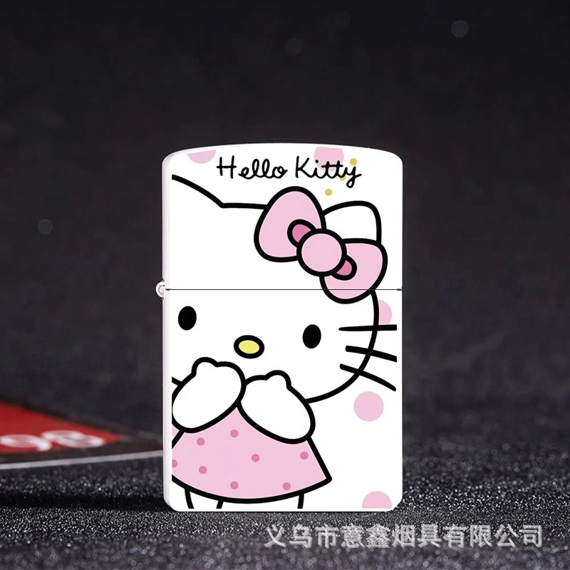 헬로 키티 만화 귀여운 등유 라이터 방풍 휠 점화 Flip 창조적 인 성격스토어 가기
