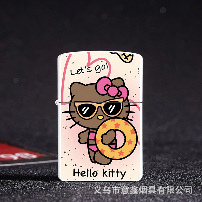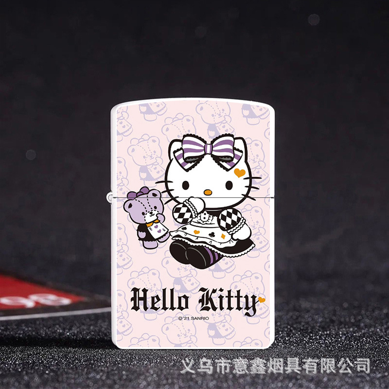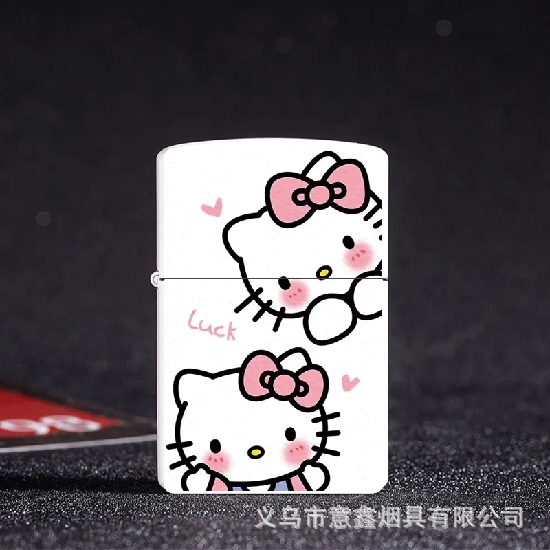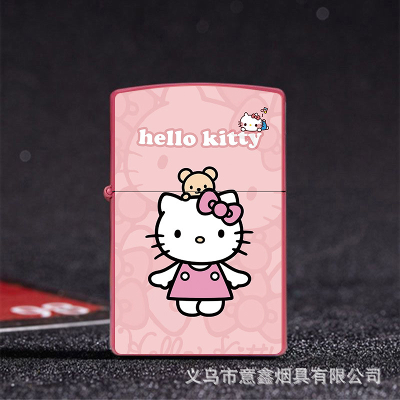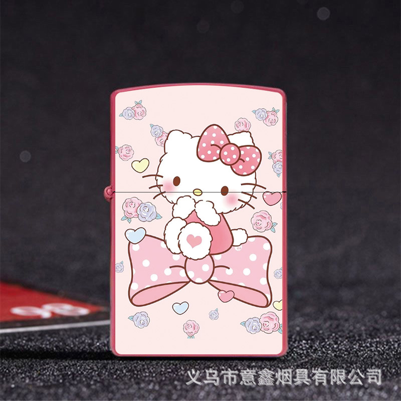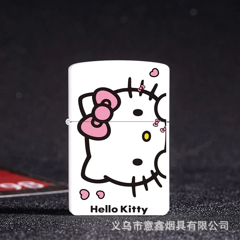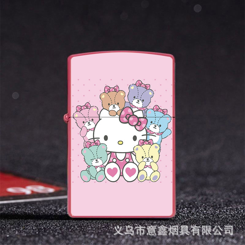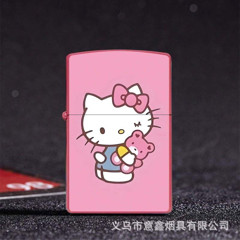 헬로 키티 만화 귀여운 등유 라이터 방풍 휠 점화 Flip 창조적 인 성격스토어 가기