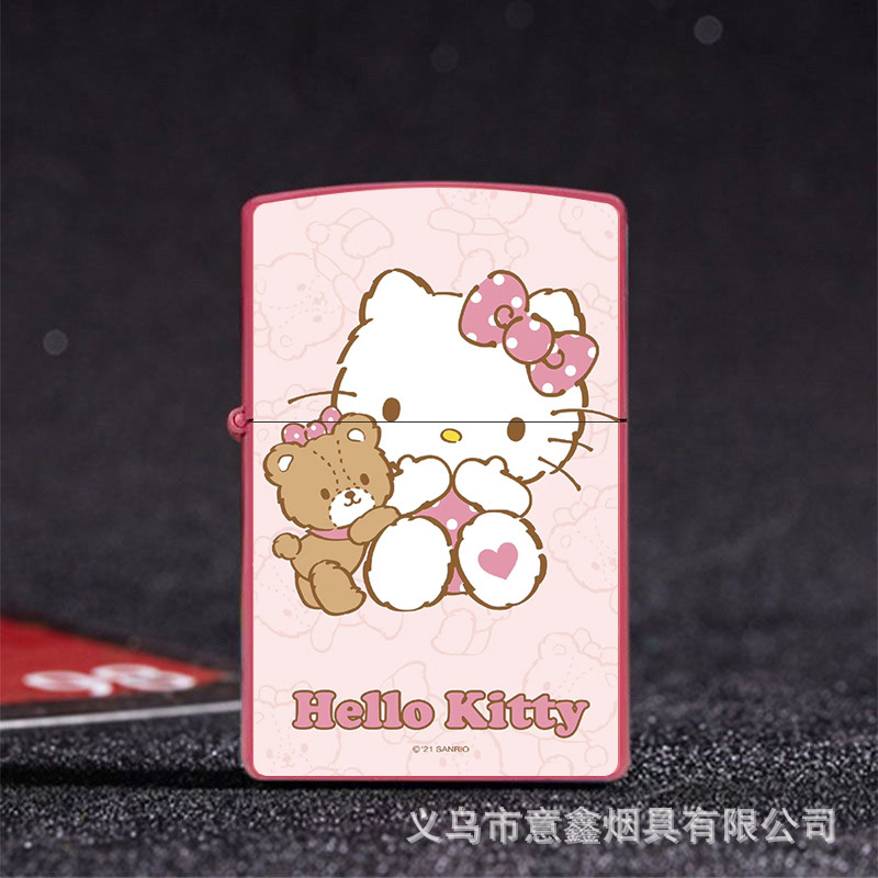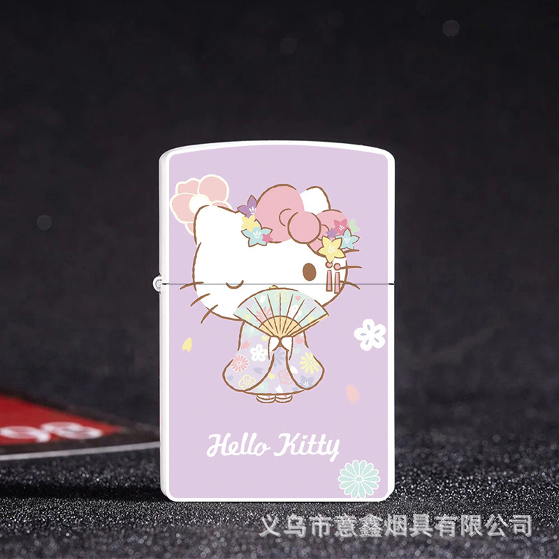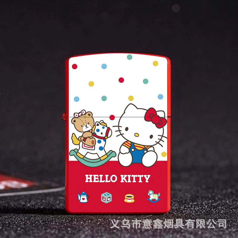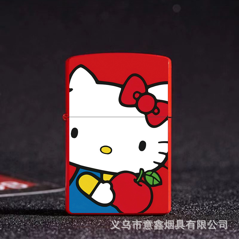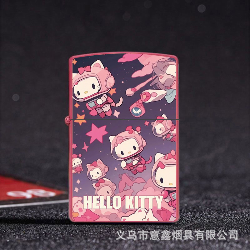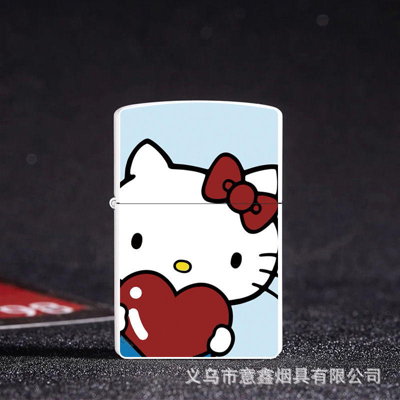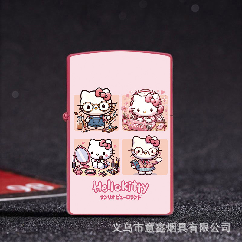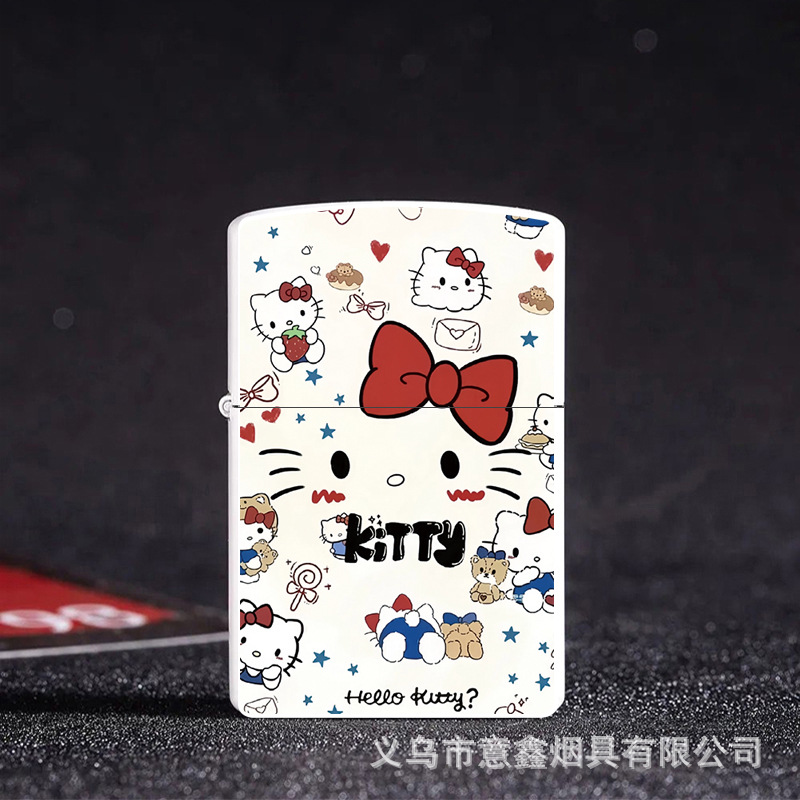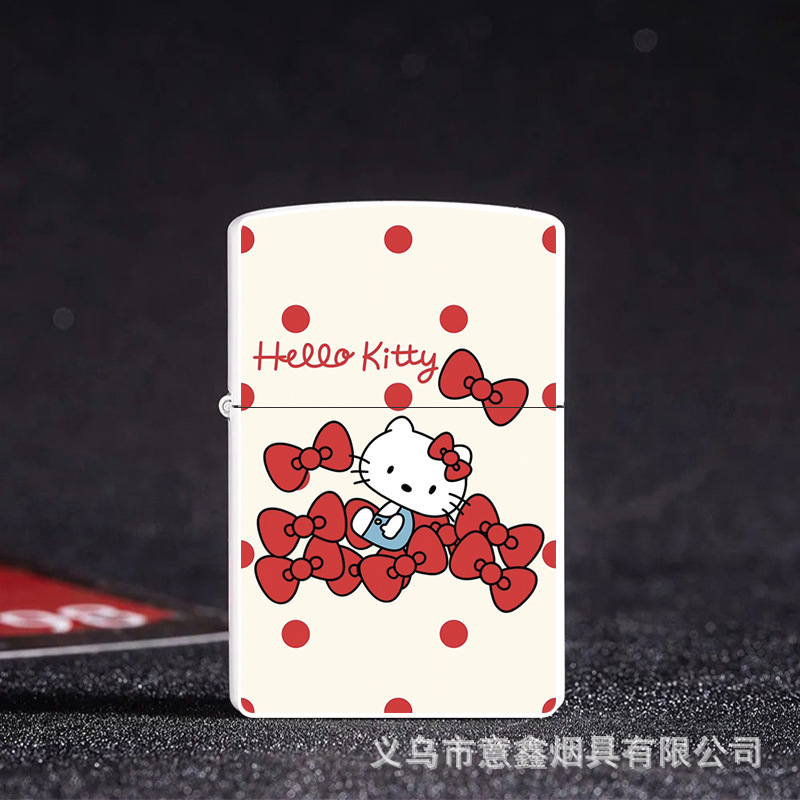 헬로 키티 만화 귀여운 등유 라이터 방풍 휠 점화 Flip 창조적 인 성격스토어 가기