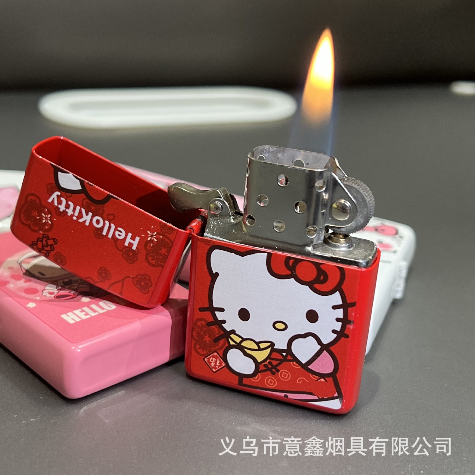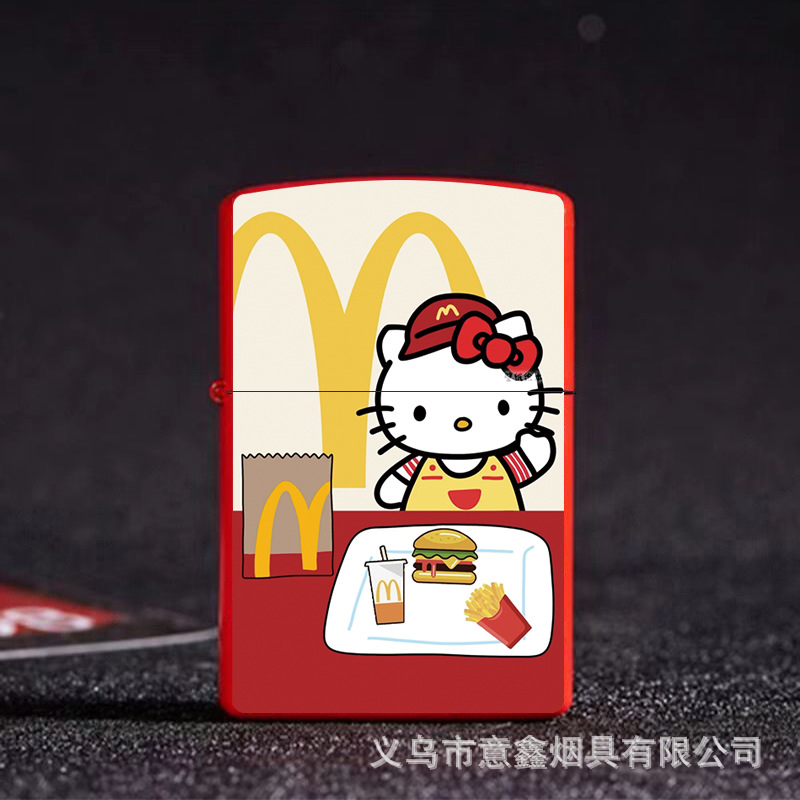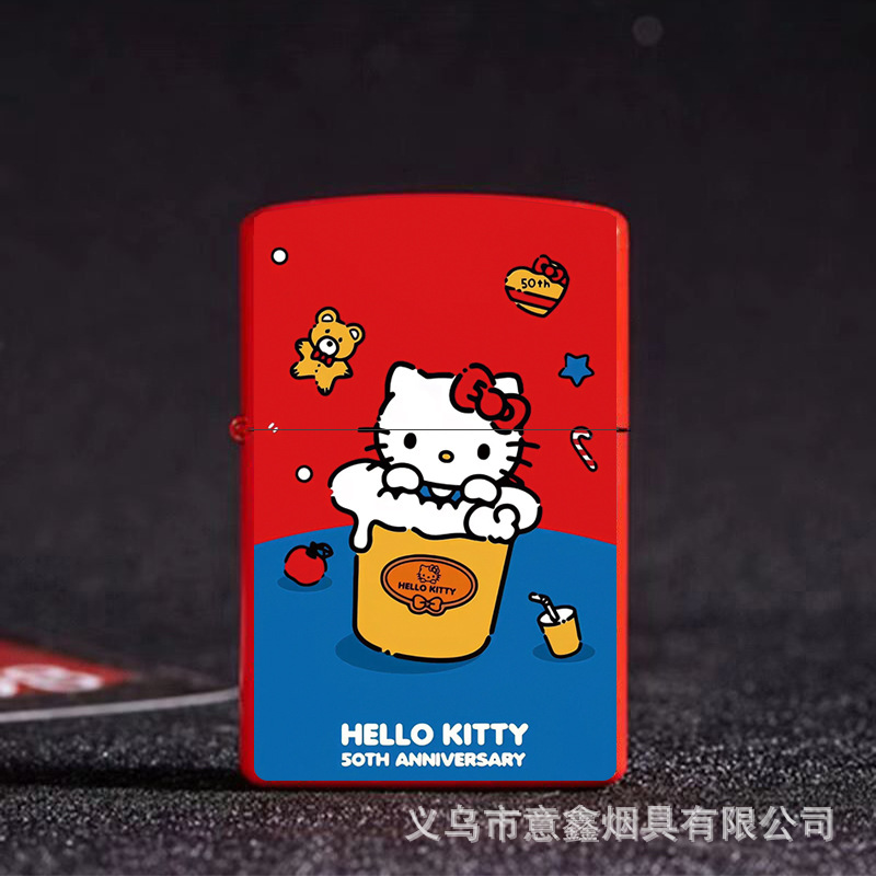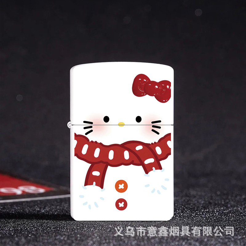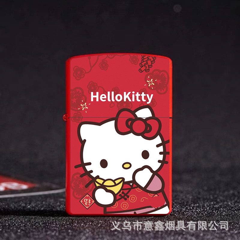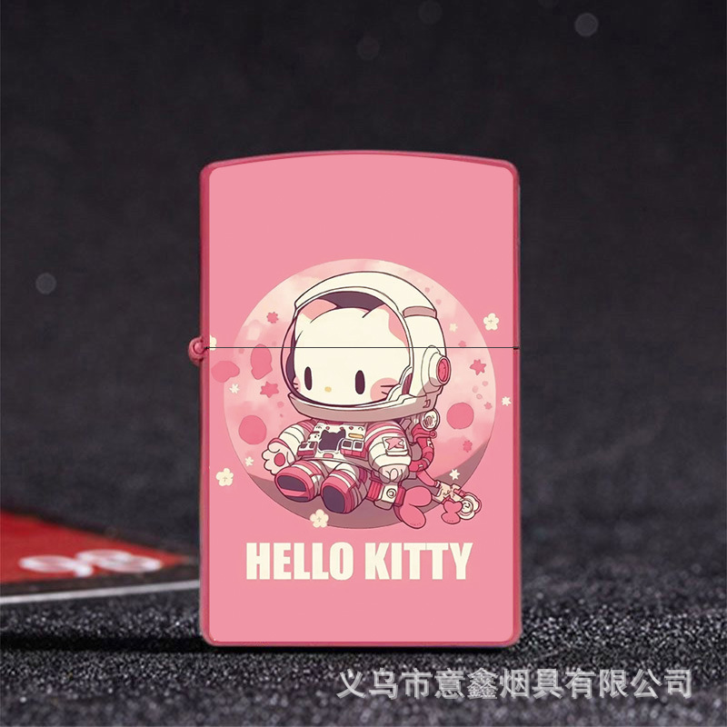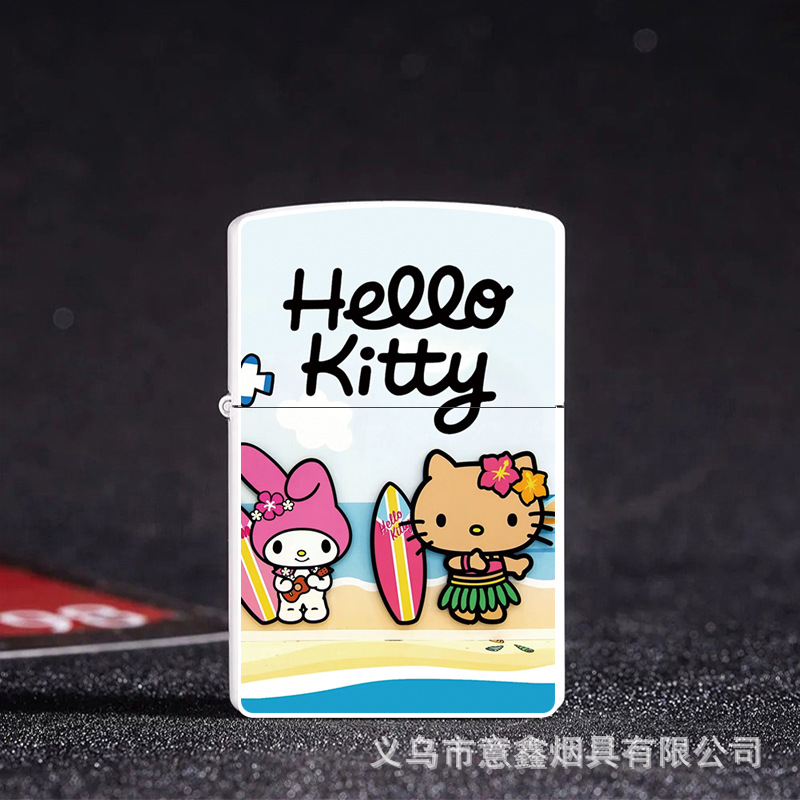 헬로 키티 만화 귀여운 등유 라이터 방풍 휠 점화 Flip 창조적 인 성격스토어 가기
