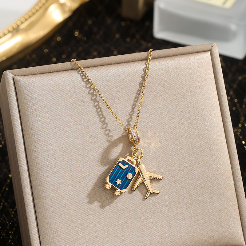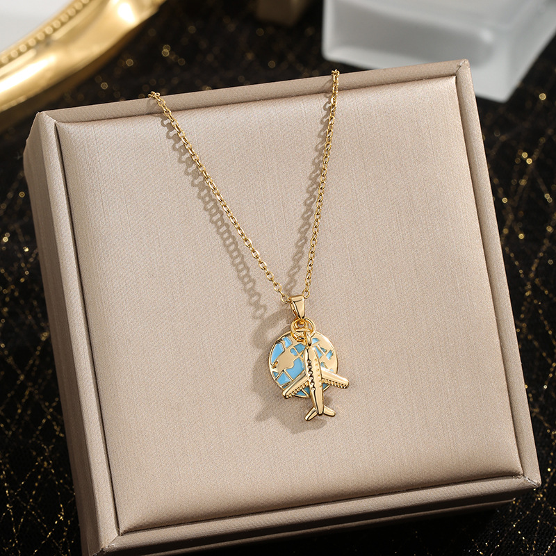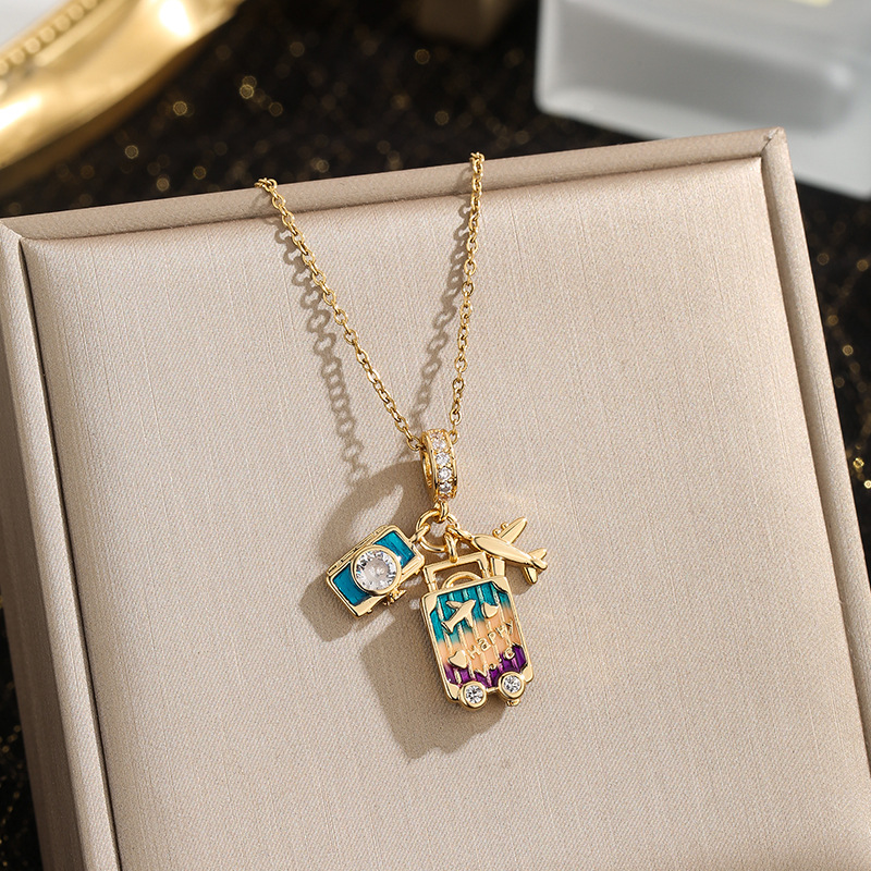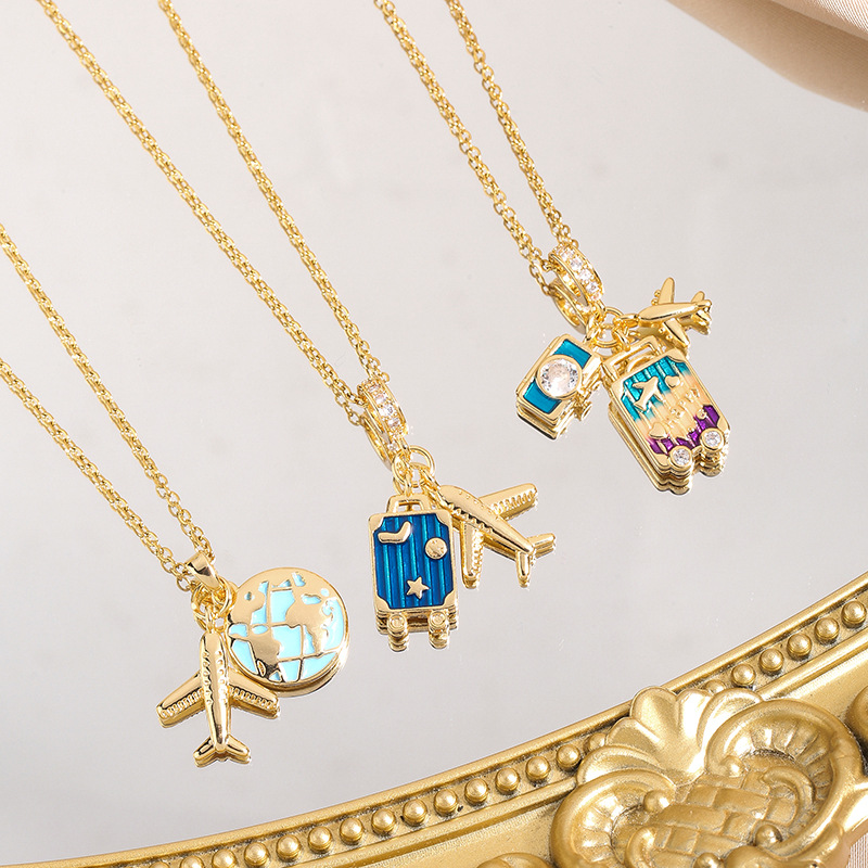 글로벌 여행 목걸이 여성 레인보우 드립 오일 카메라 가방 항공기 펜던트 패션 라이트 럭셔리 디자인 센스 콜라본 체인스토어 가기
