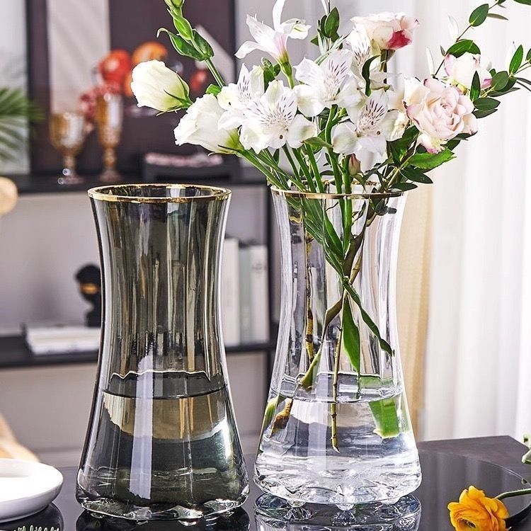 가벼운 고급 유리 꽃병 투명한 물 올리기 꽃 릴리 풍부한 대나무 창조적 인 거실 꽃 장식품 꽃 세트스토어 가기