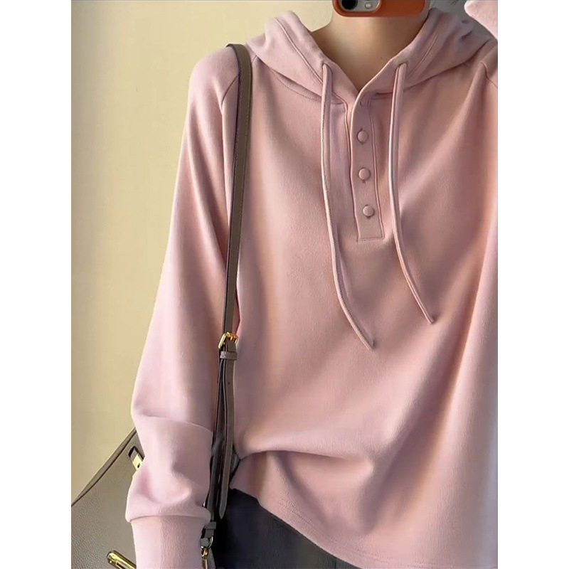 봄 2025 새로운 패션 캐주얼 후드 스웨트 여성 한국식 단순 셔츠 올매치 연령 감소 이너 탑