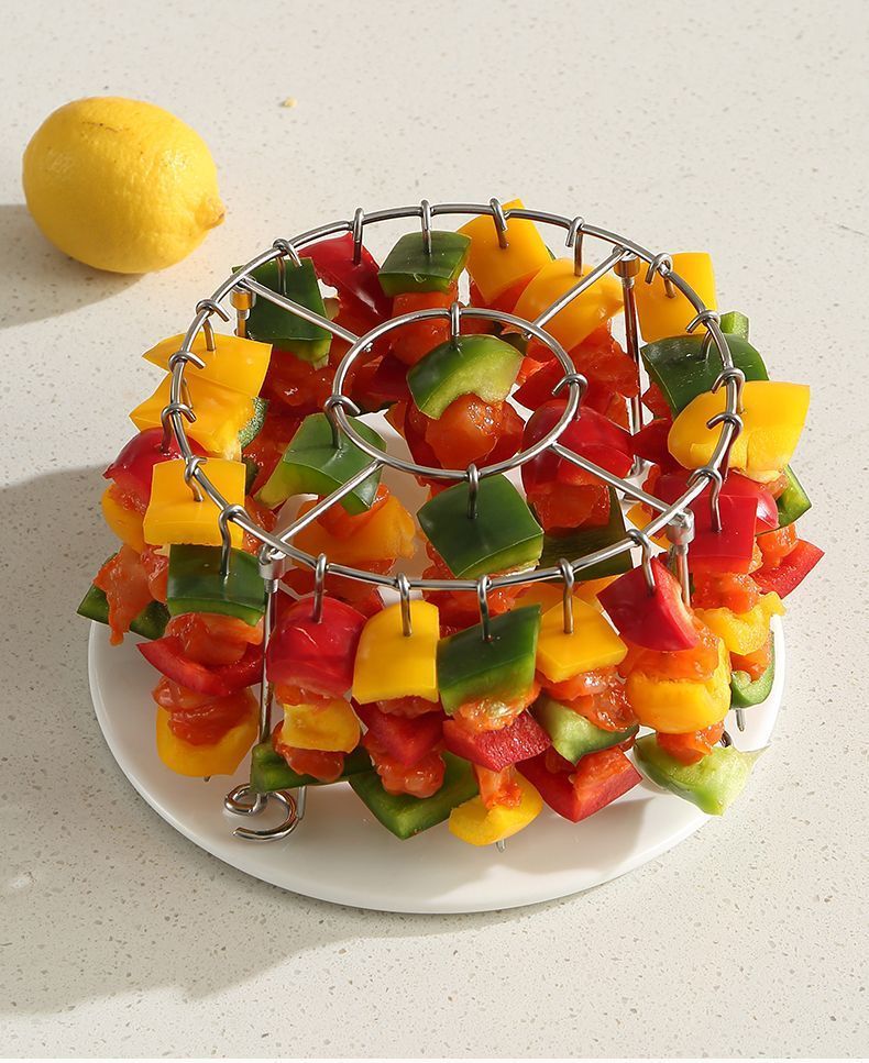 스테인레스 스틸 바베큐 24 꼬치 에어 프라이어 인기 바베큐 랙 오븐 라운드 교수형 꼬치 랙 고기 꼬치 랙 홈스토어 가기
