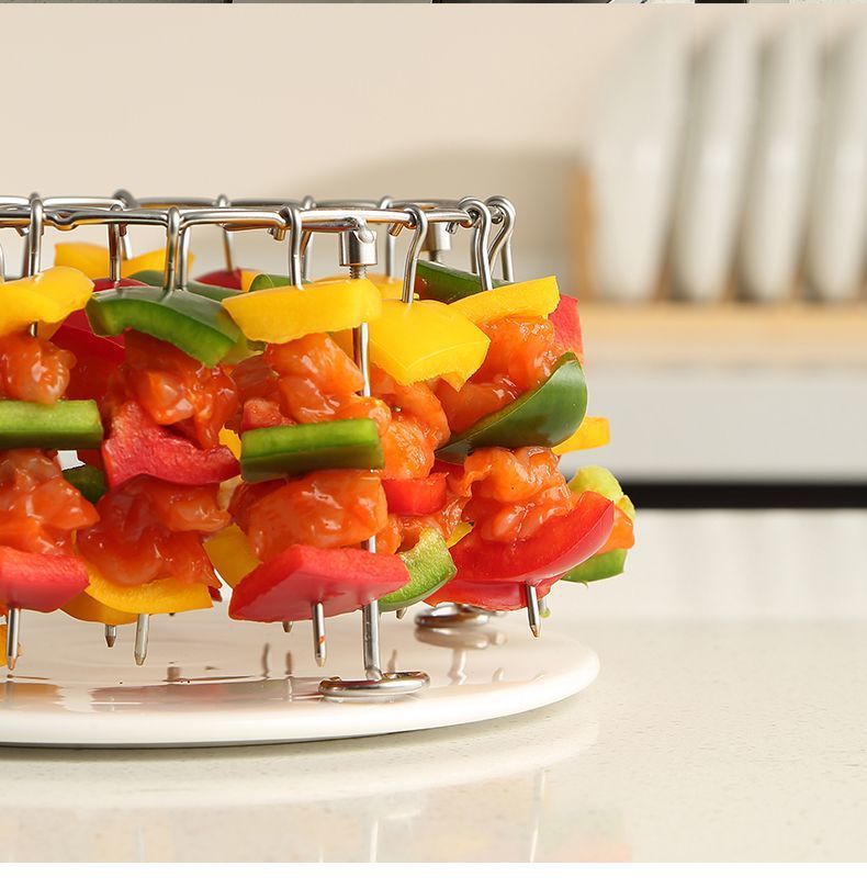 스테인레스 스틸 바베큐 24 꼬치 에어 프라이어 인기 바베큐 랙 오븐 라운드 교수형 꼬치 랙 고기 꼬치 랙 홈