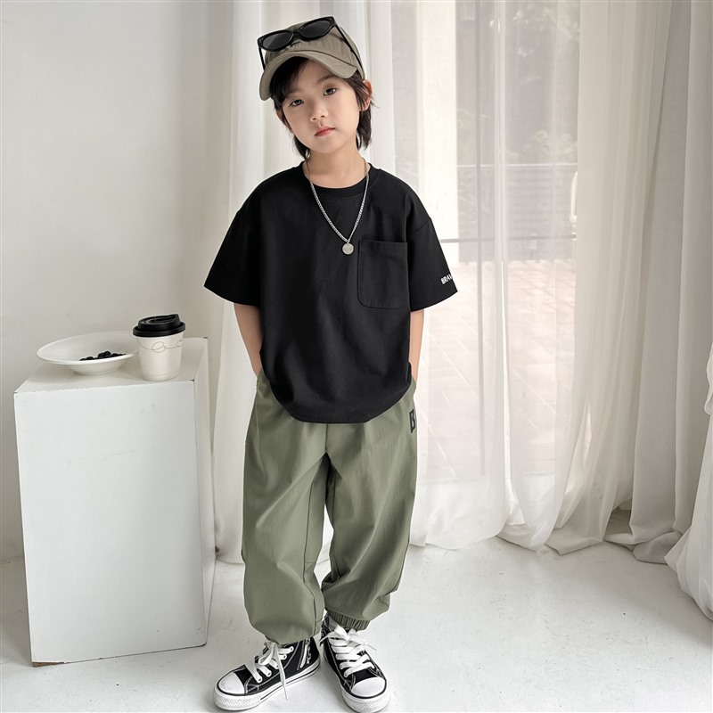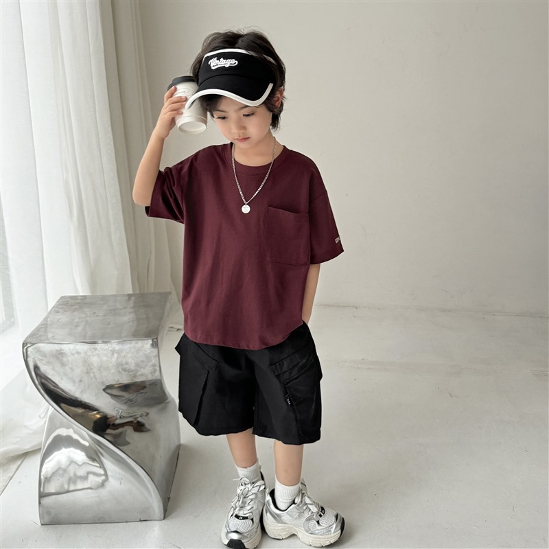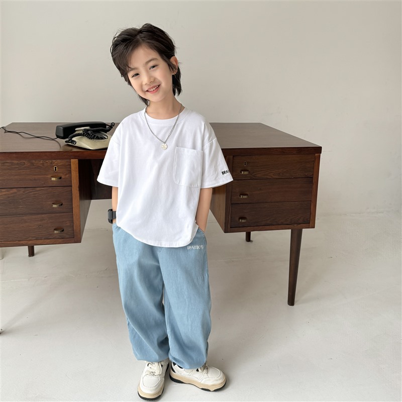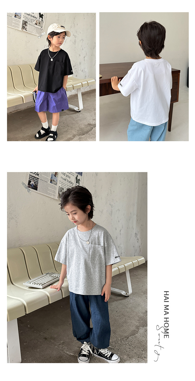 Haima의 2025 새로운 여름 스타일 소년 순면 시원한 반팔 티셔츠 여름 옷 한국 스타일 아동복 중대형 어린이스토어 가기