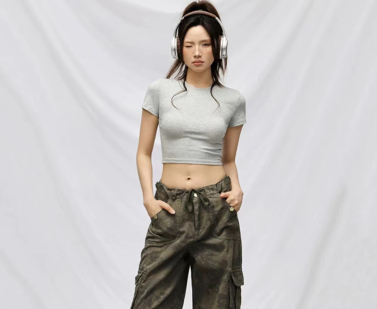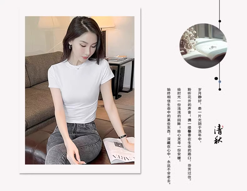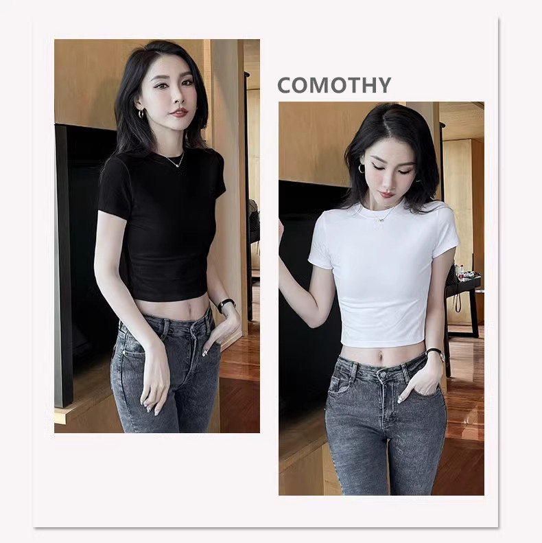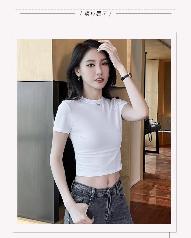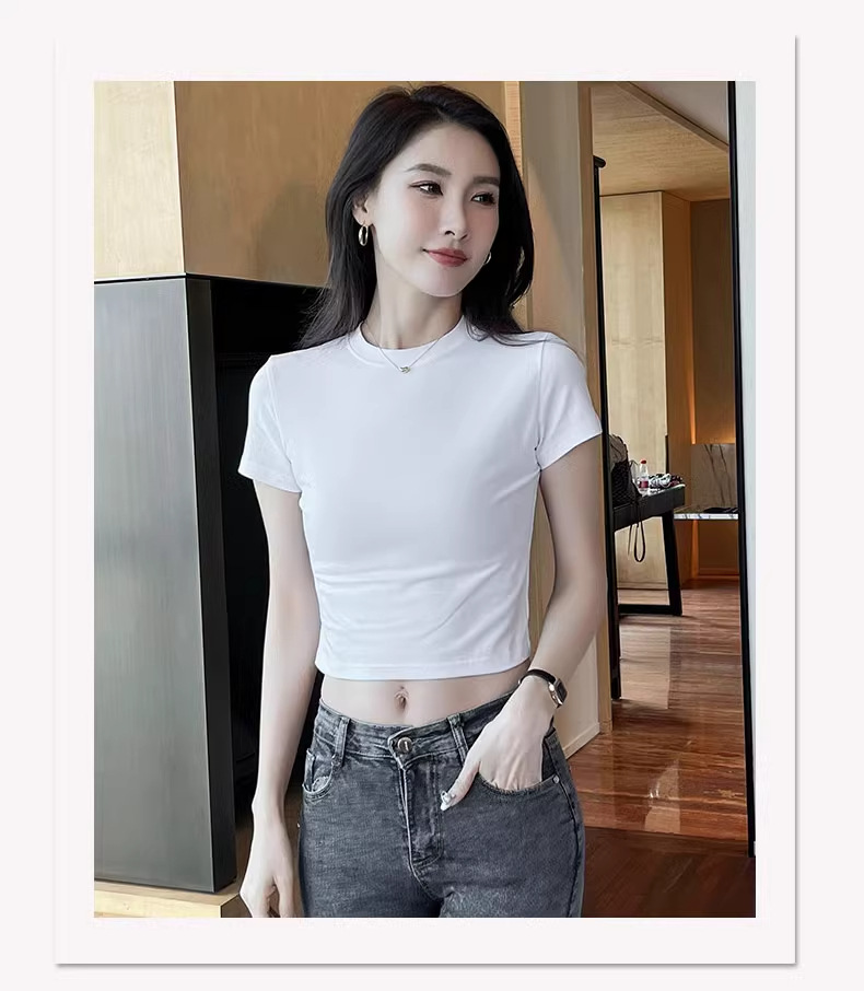 새로운 짧은 티셔츠 여성용 반팔 탑 블랙 솔리드 컬러 높은 허리 스파이스 소녀 작은 티셔츠 섹시한 배꼽 여름스토어 가기