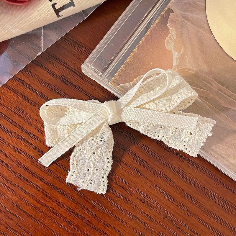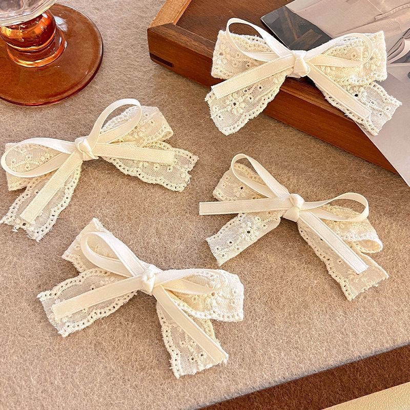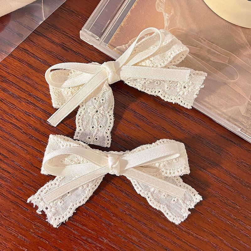 • 미색 레이스 패브릭 더블 레이어 보우