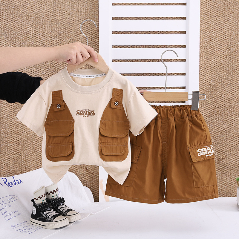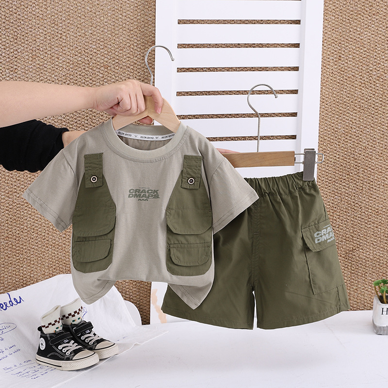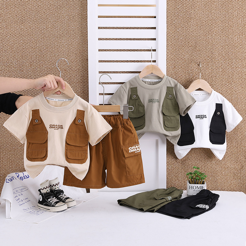 소년 여름 세트 새로운 유행 아기의 여름 어린이 얇은 패딩 더블 포켓 반팔 투피스 유행 세트스토어 가기