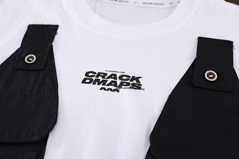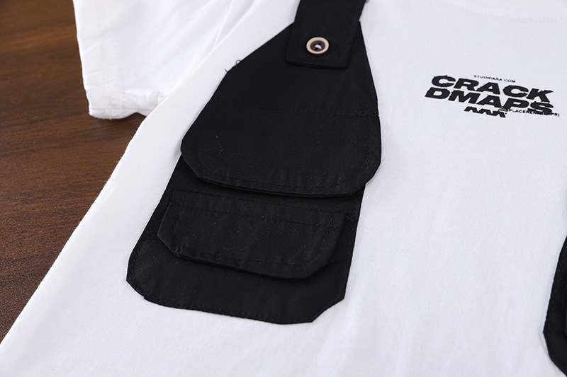 소년 여름 세트 새로운 유행 아기의 여름 어린이 얇은 패딩 더블 포켓 반팔 투피스 유행 세트