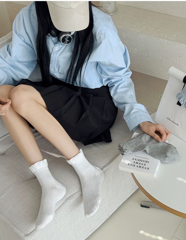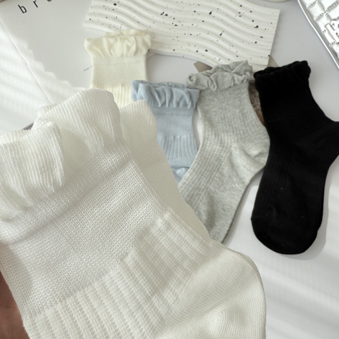 봄과 여름 솔리드 컬러 레이스 얇은 짧은 양말 여성 발레 스타일 JK 소녀의 순수한 일본식 게으른 양말 거품 입스토어 가기