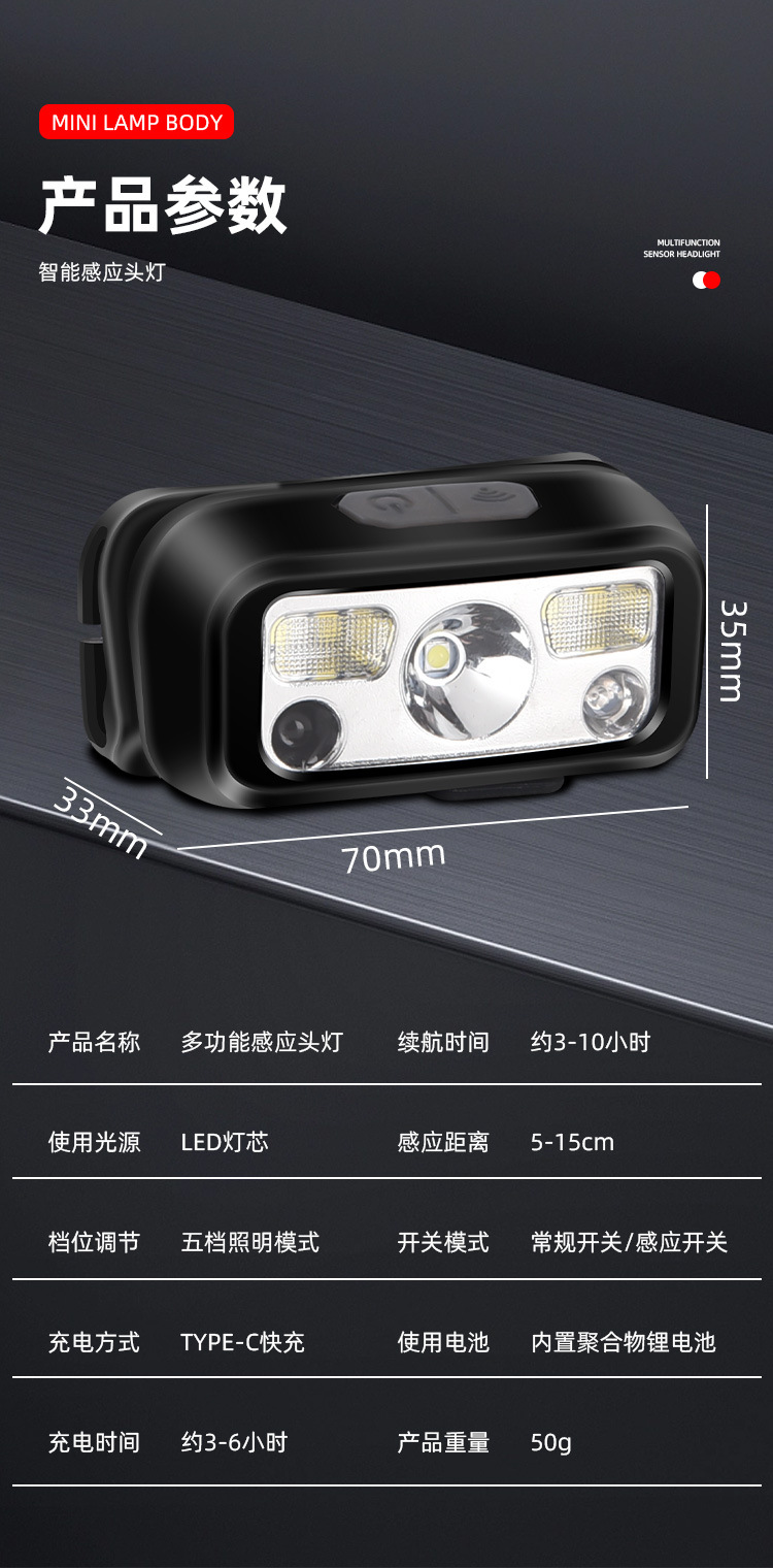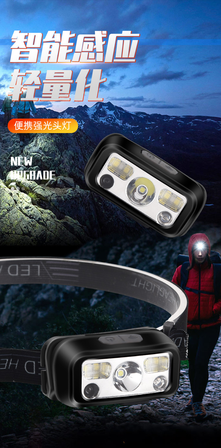 충전식 헤드라이트 야외 조명 사이클링 손흔들림 감지 헤드라이트 낚시 LED 야간 낚시 손전등 야간 낚시 램프스토어 가기