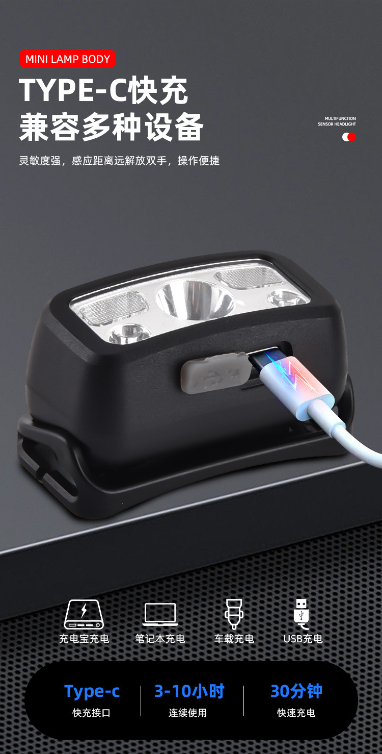 충전식 헤드라이트 야외 조명 사이클링 손흔들림 감지 헤드라이트 낚시 LED 야간 낚시 손전등 야간 낚시 램프