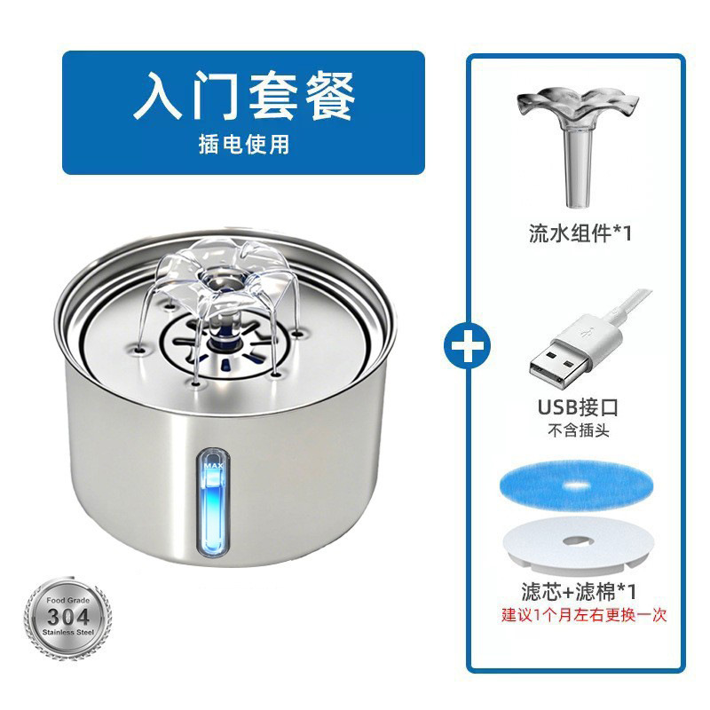 새로운 스테인레스 스틸 애완 동물 워터 디스펜서 고양이 분수 자동 워터 디스펜서 고양이 마시는 스마트 애완 동물 용품 제조 업체스토어 가기